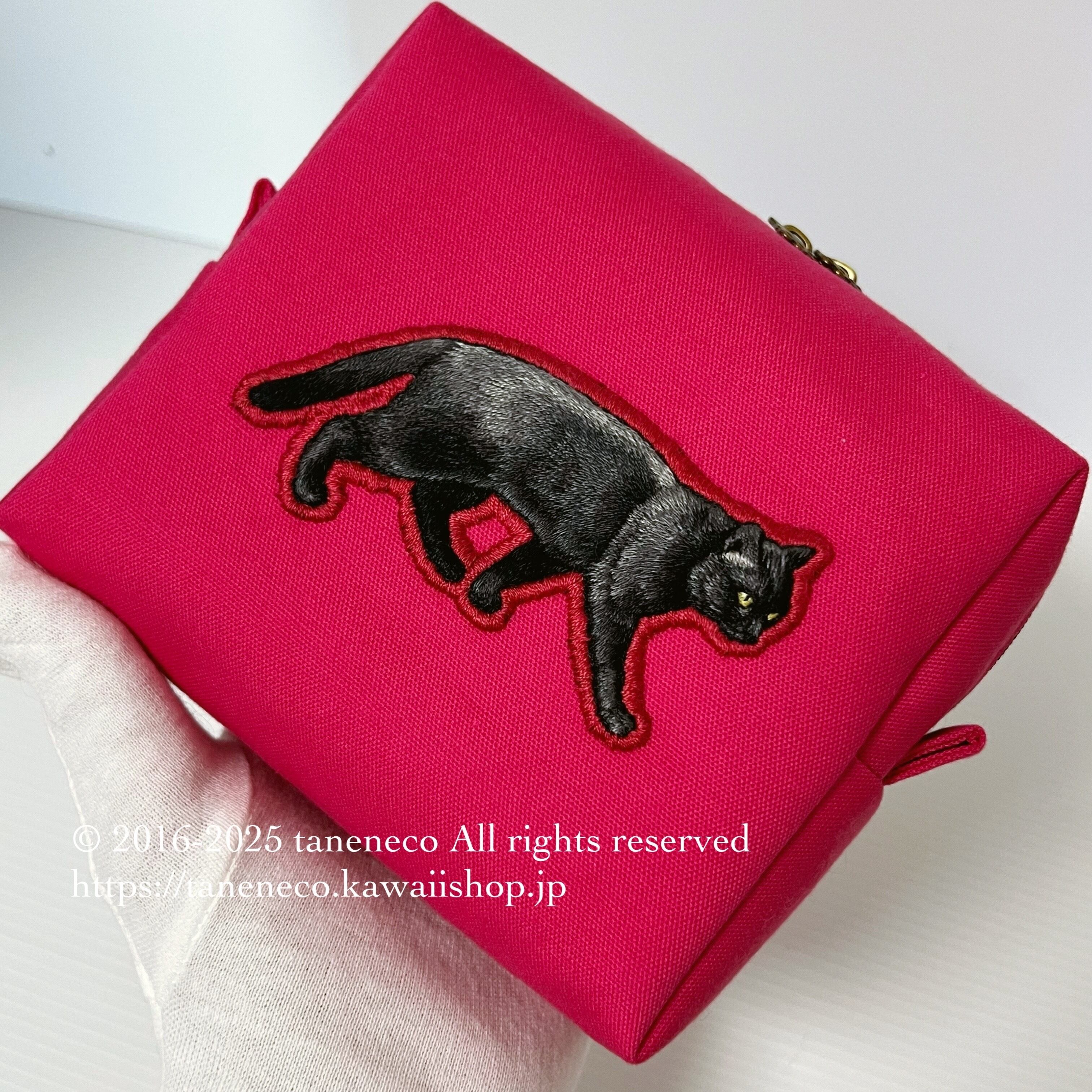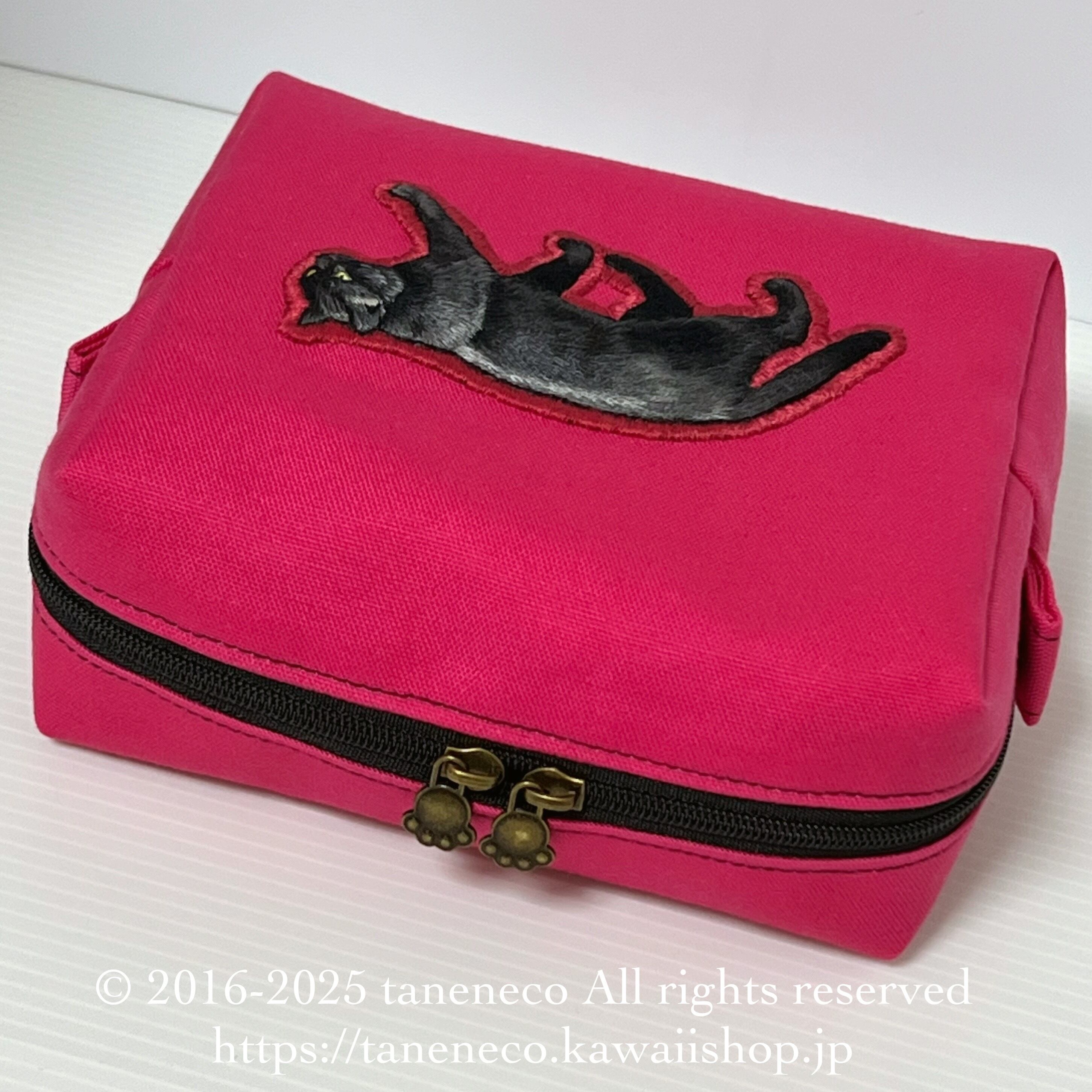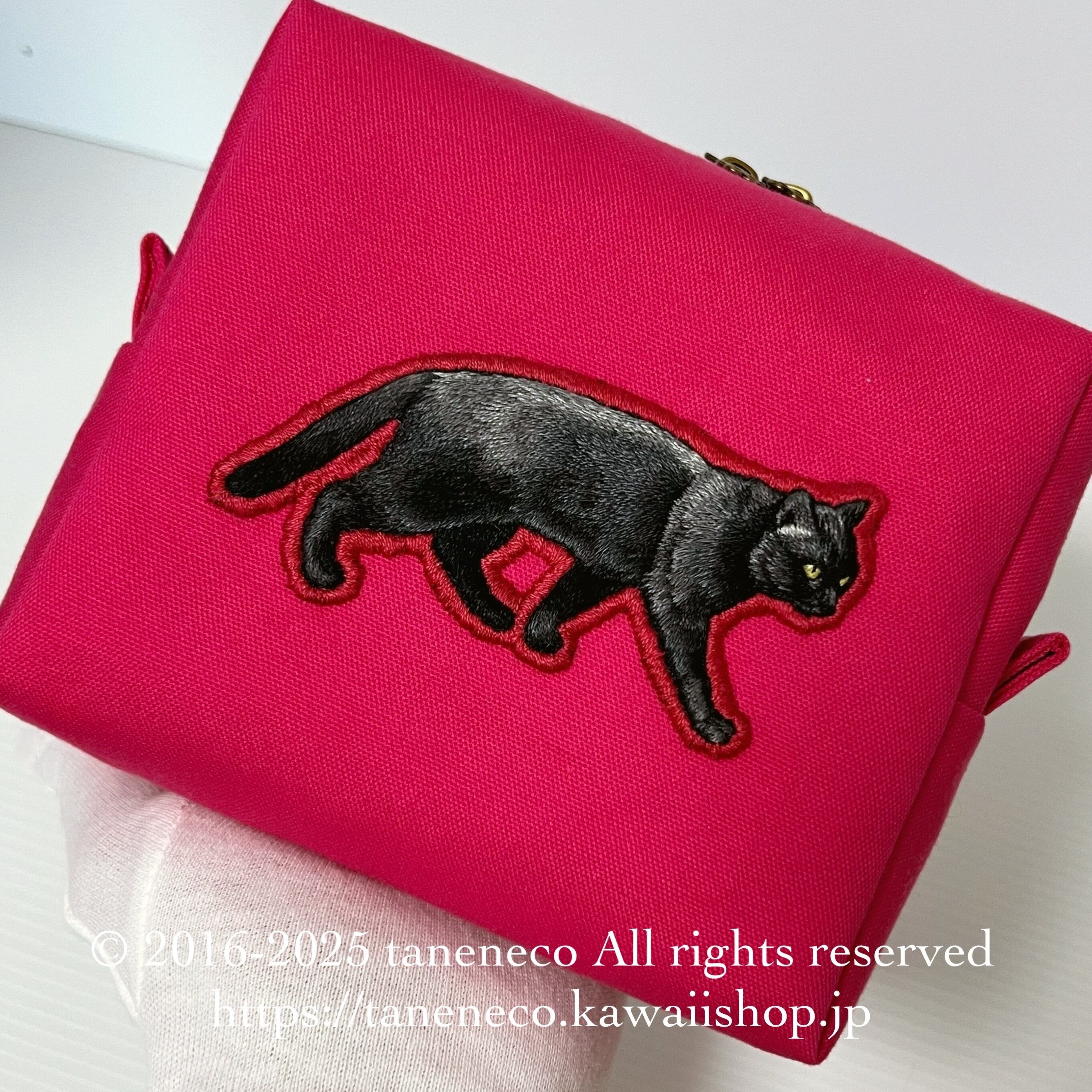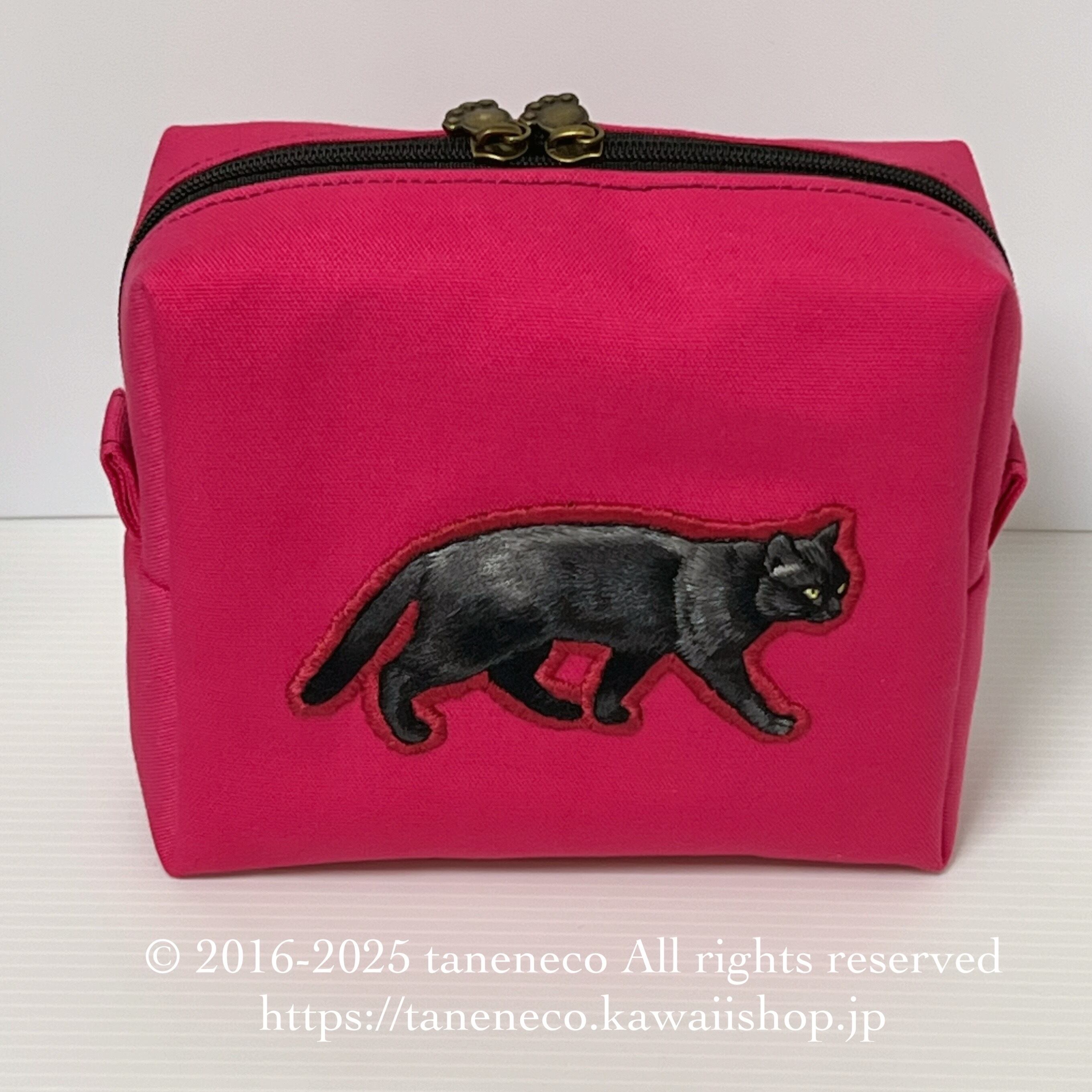プレゼントクーポン対象taneneco手刺繍作品ポーチ‑ピンクニャンサー−
