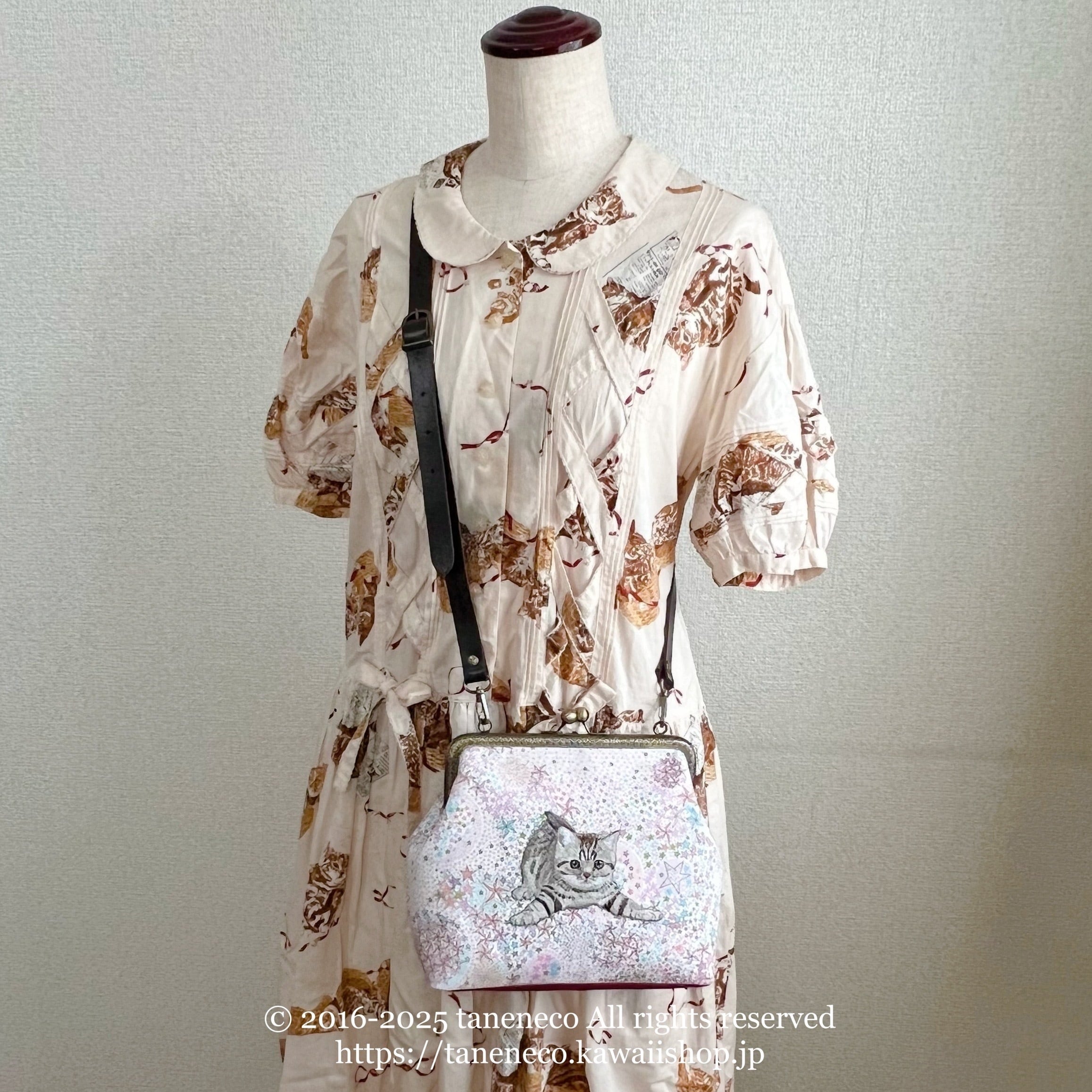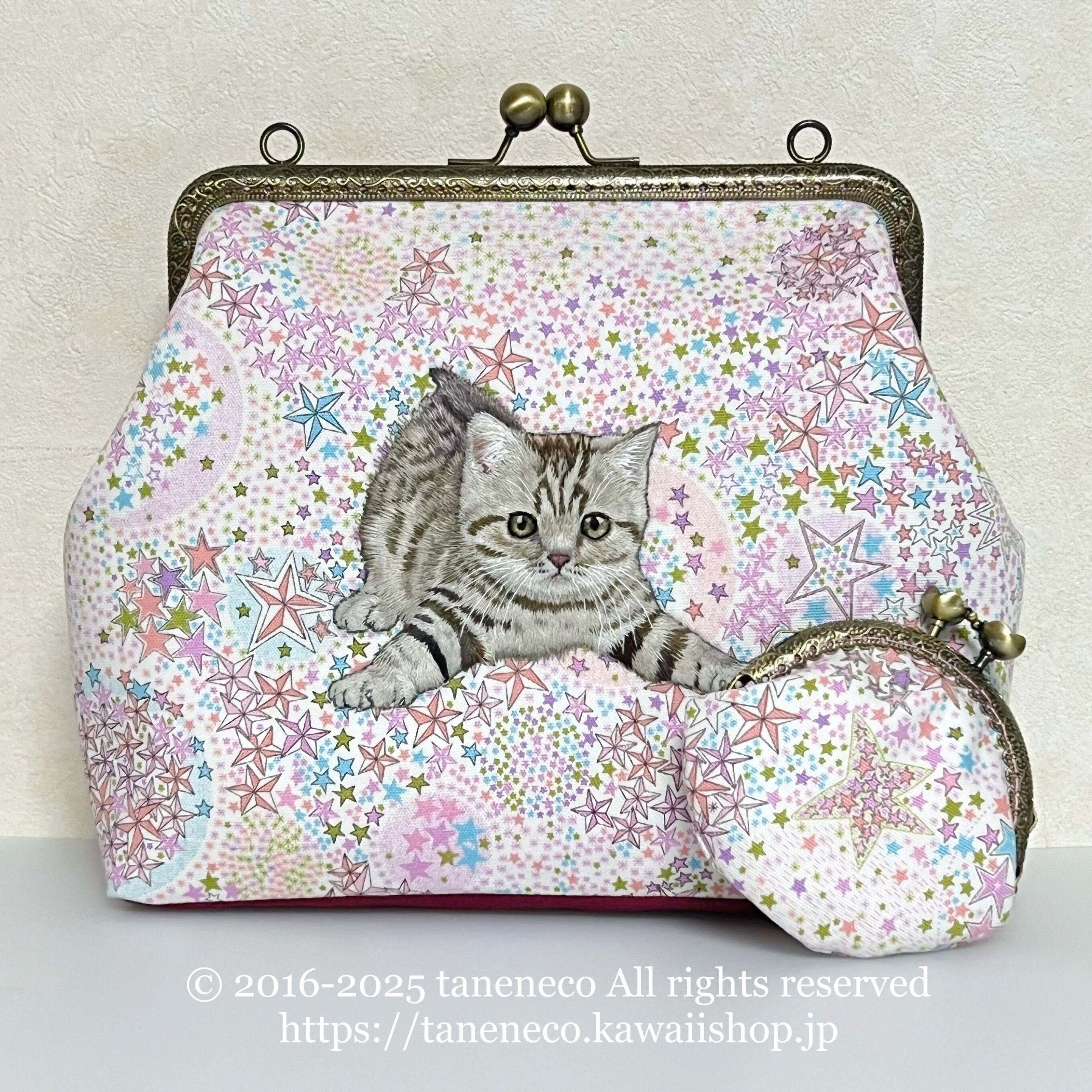 taneneco手刺繍作品『星畑で飛び跳ね喜ぶ愛の天使』がま口バッグ