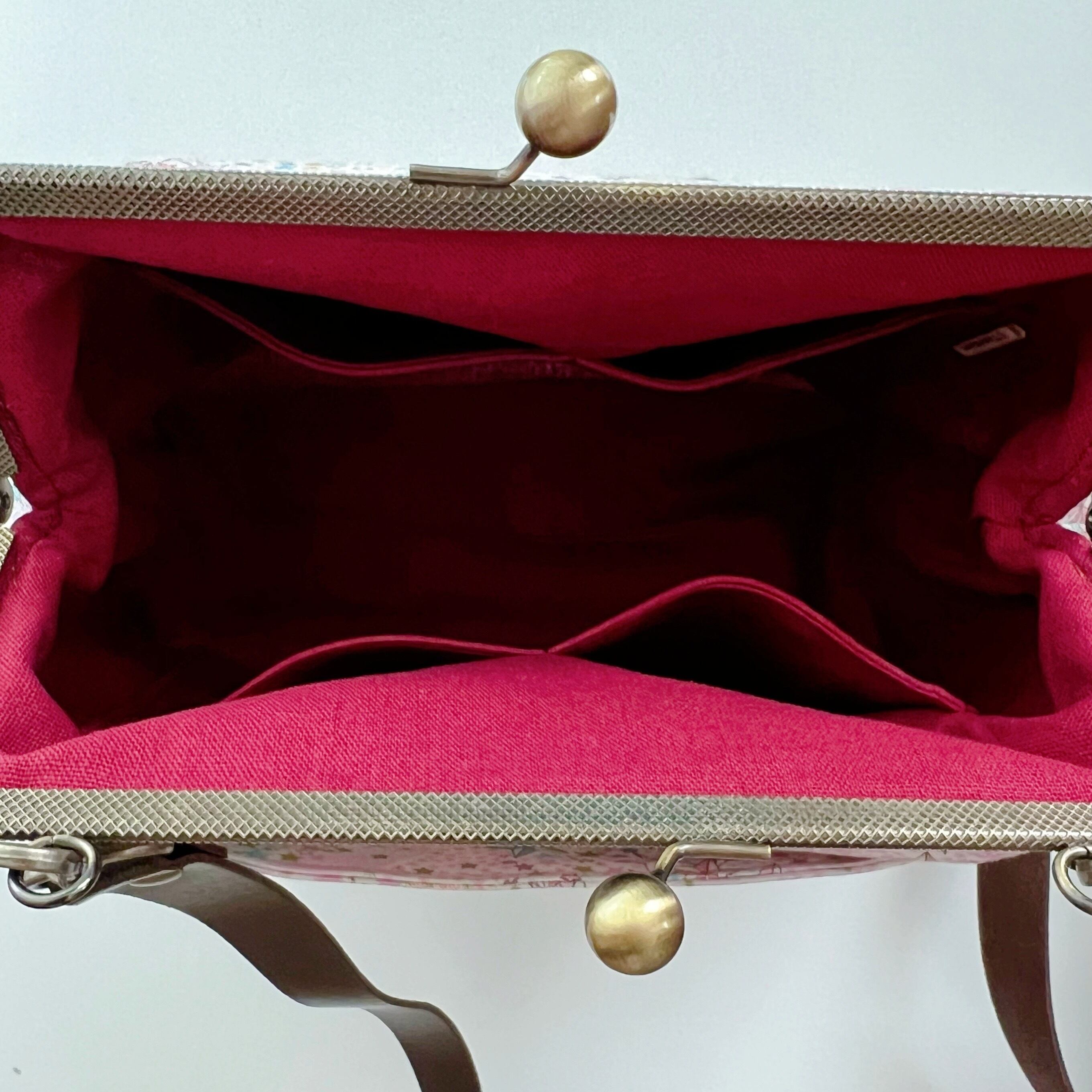 コンパクトながらも収納力のあるがま口バッグです。三つ折り財布まで収納可能です。