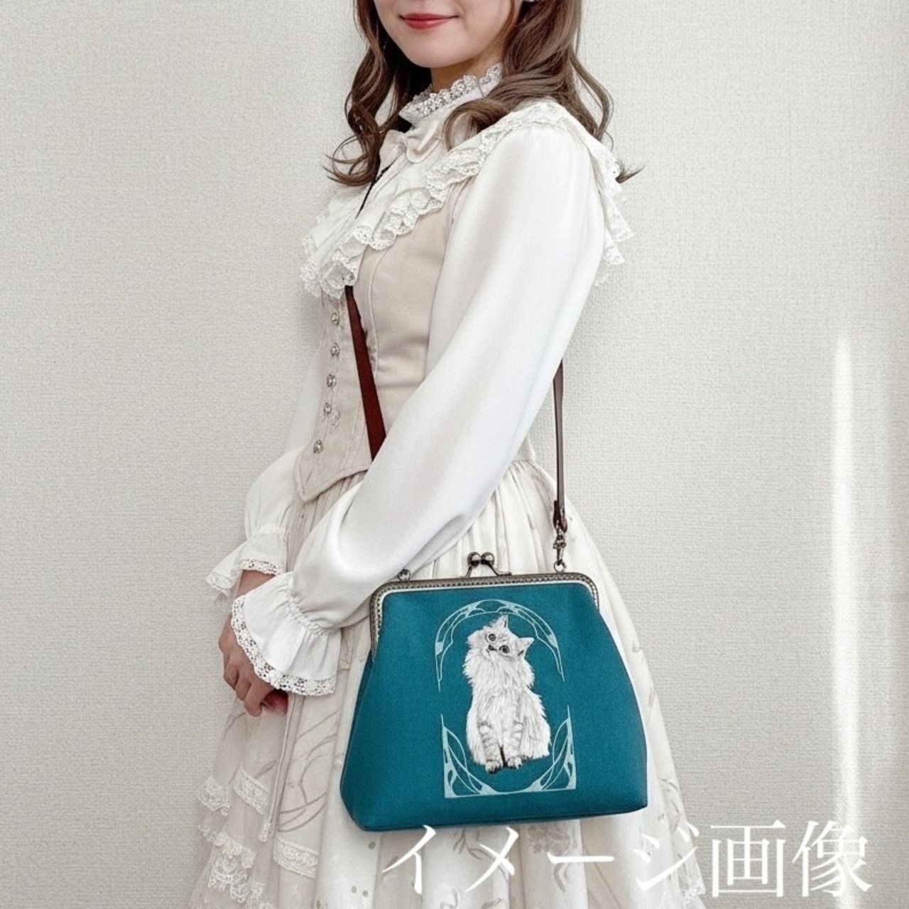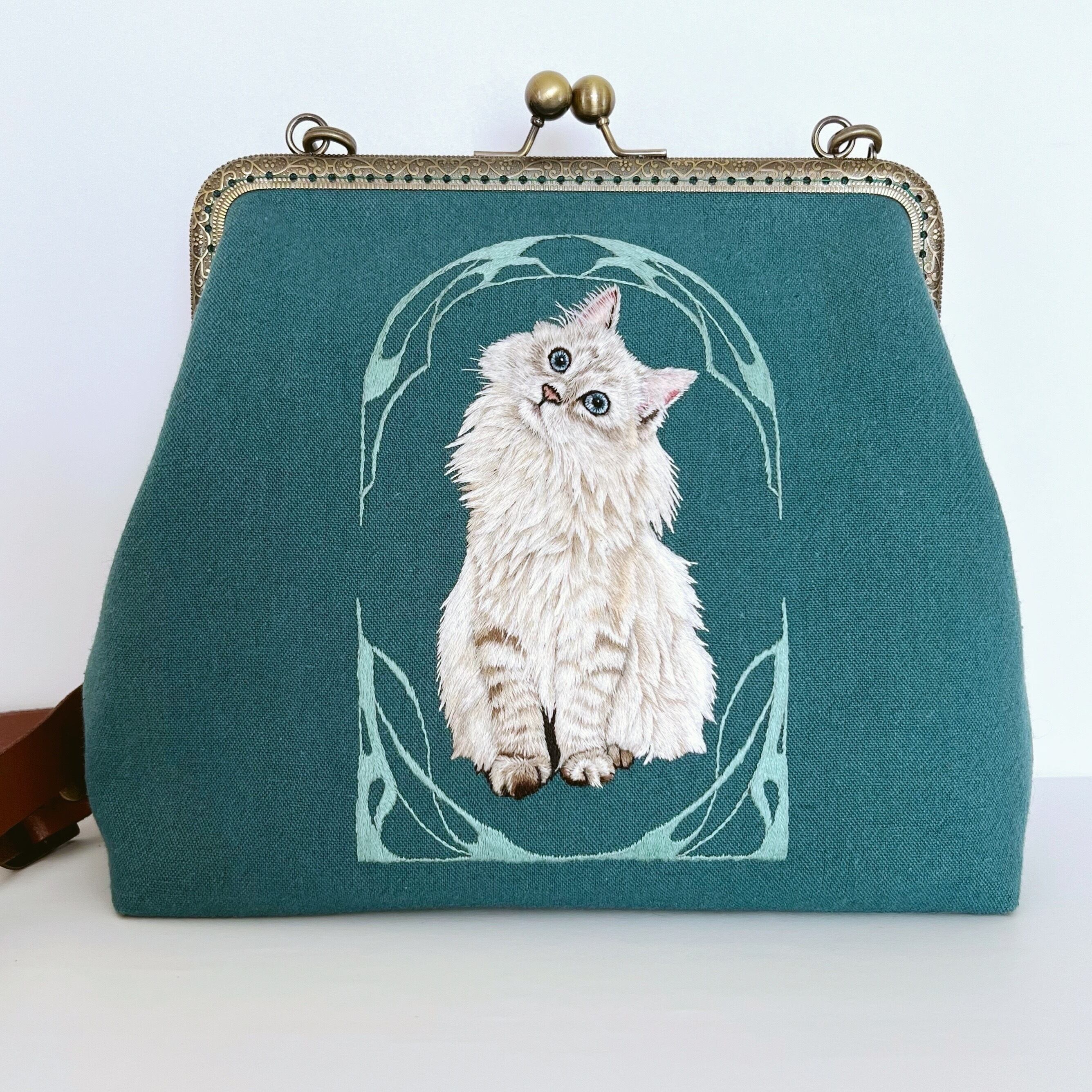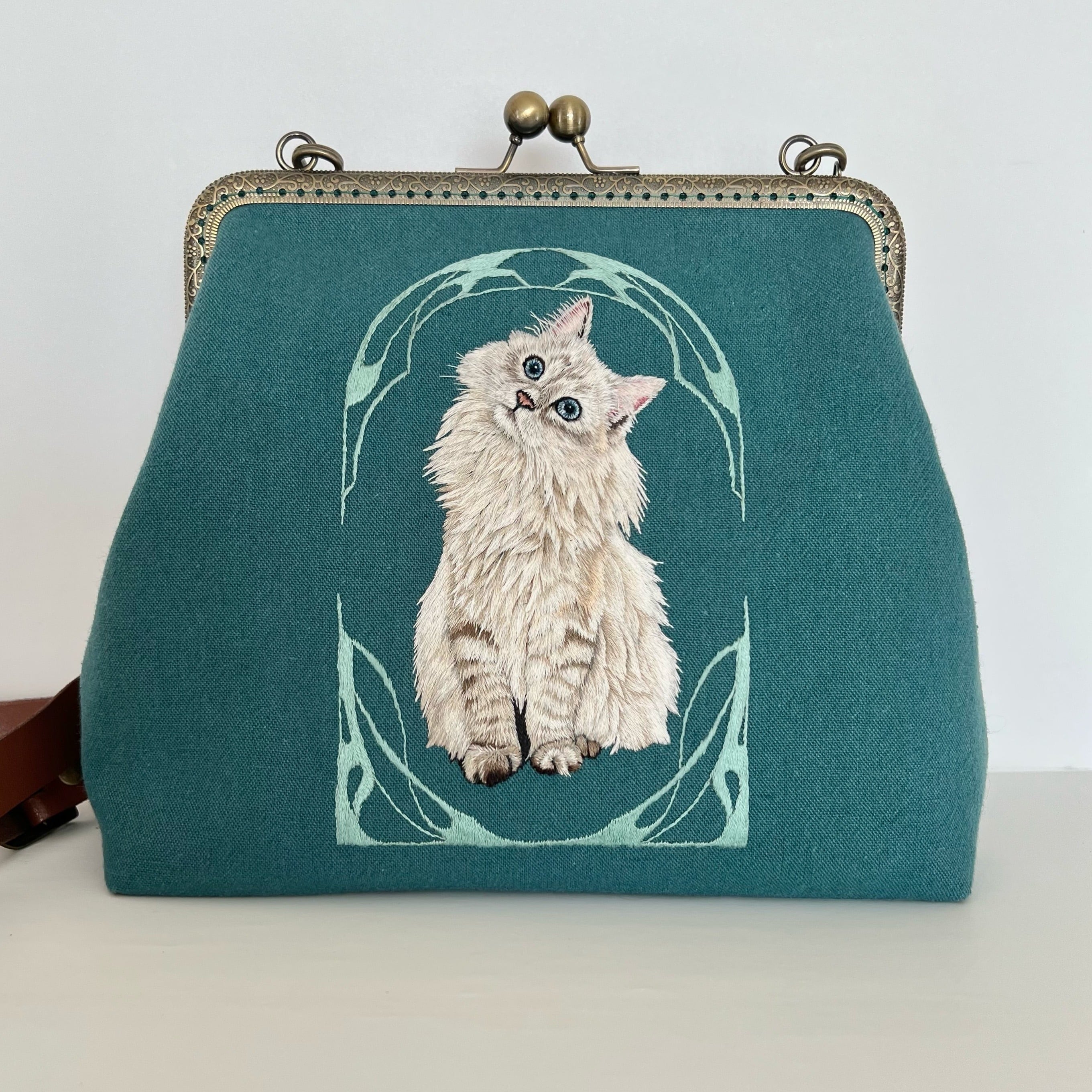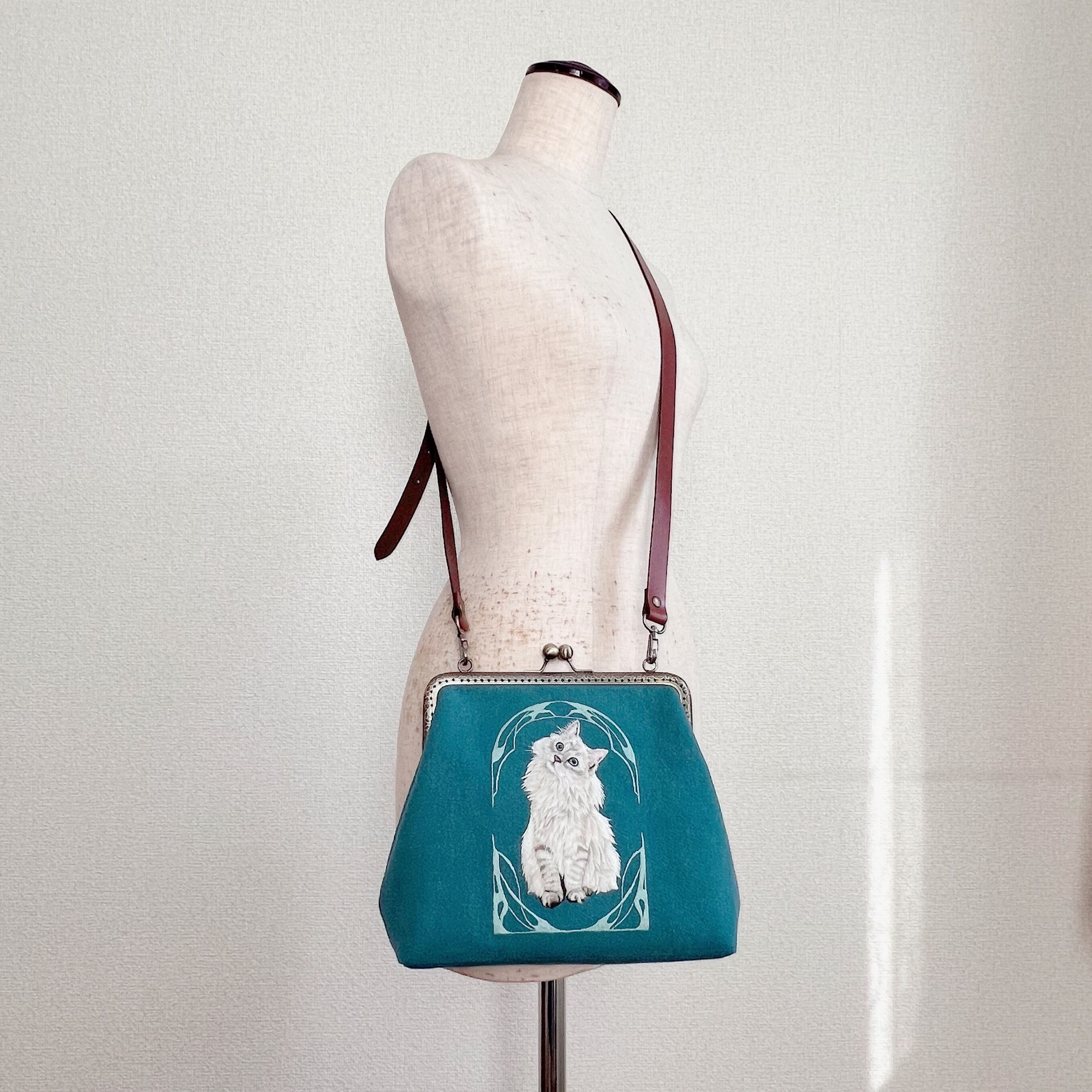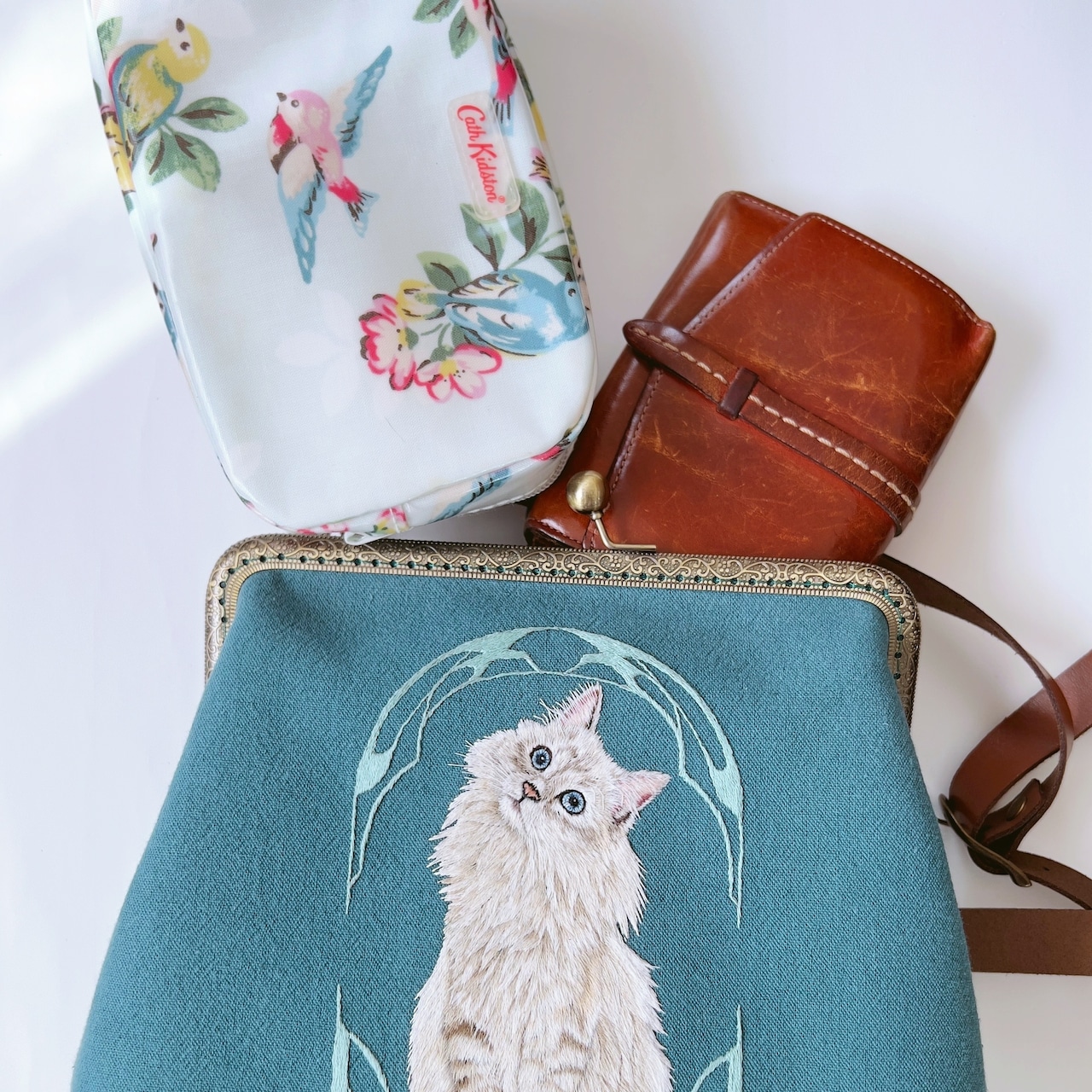taneneco手刺繍作品『夢心地な天使-ラグドール-』がま口ショルダーバッグ