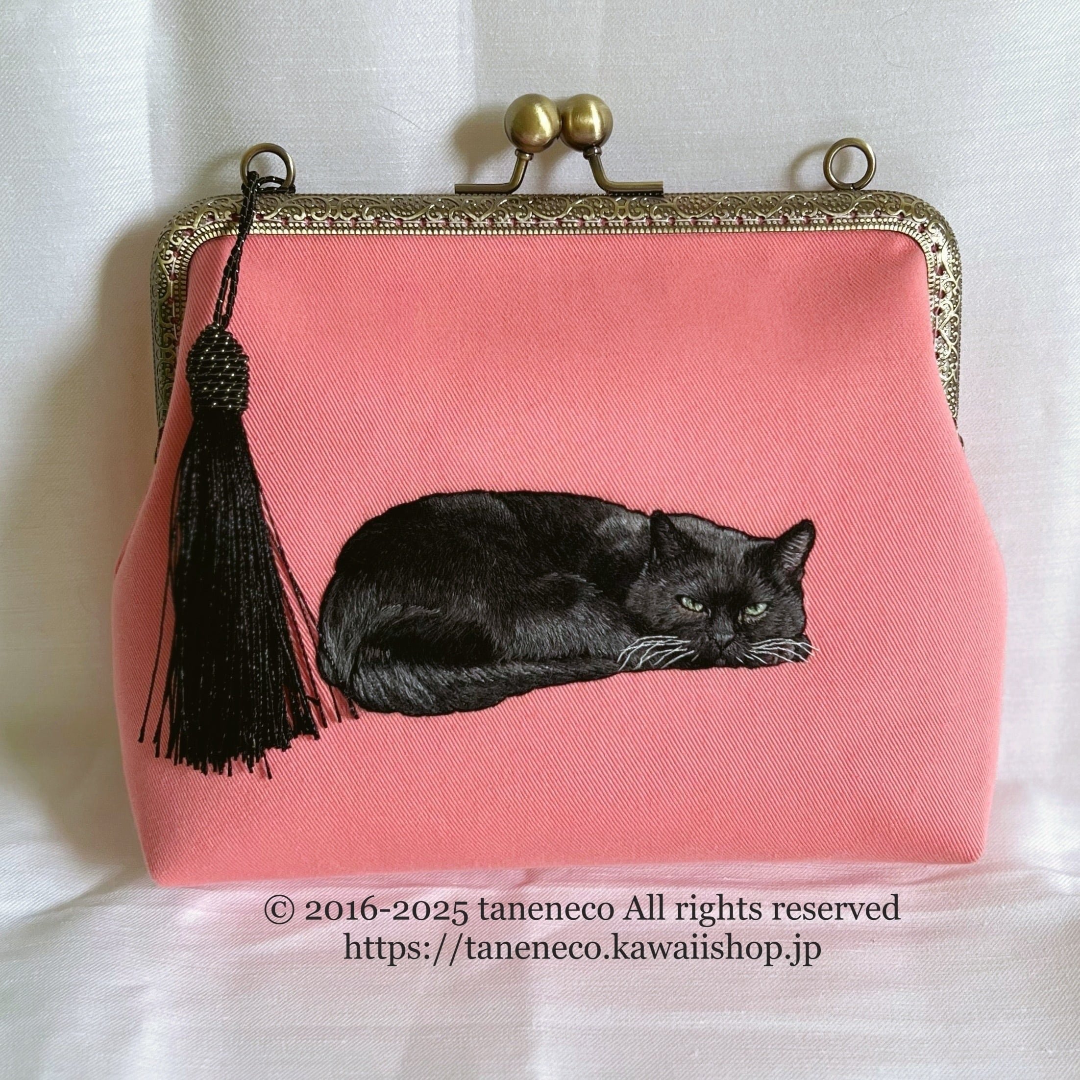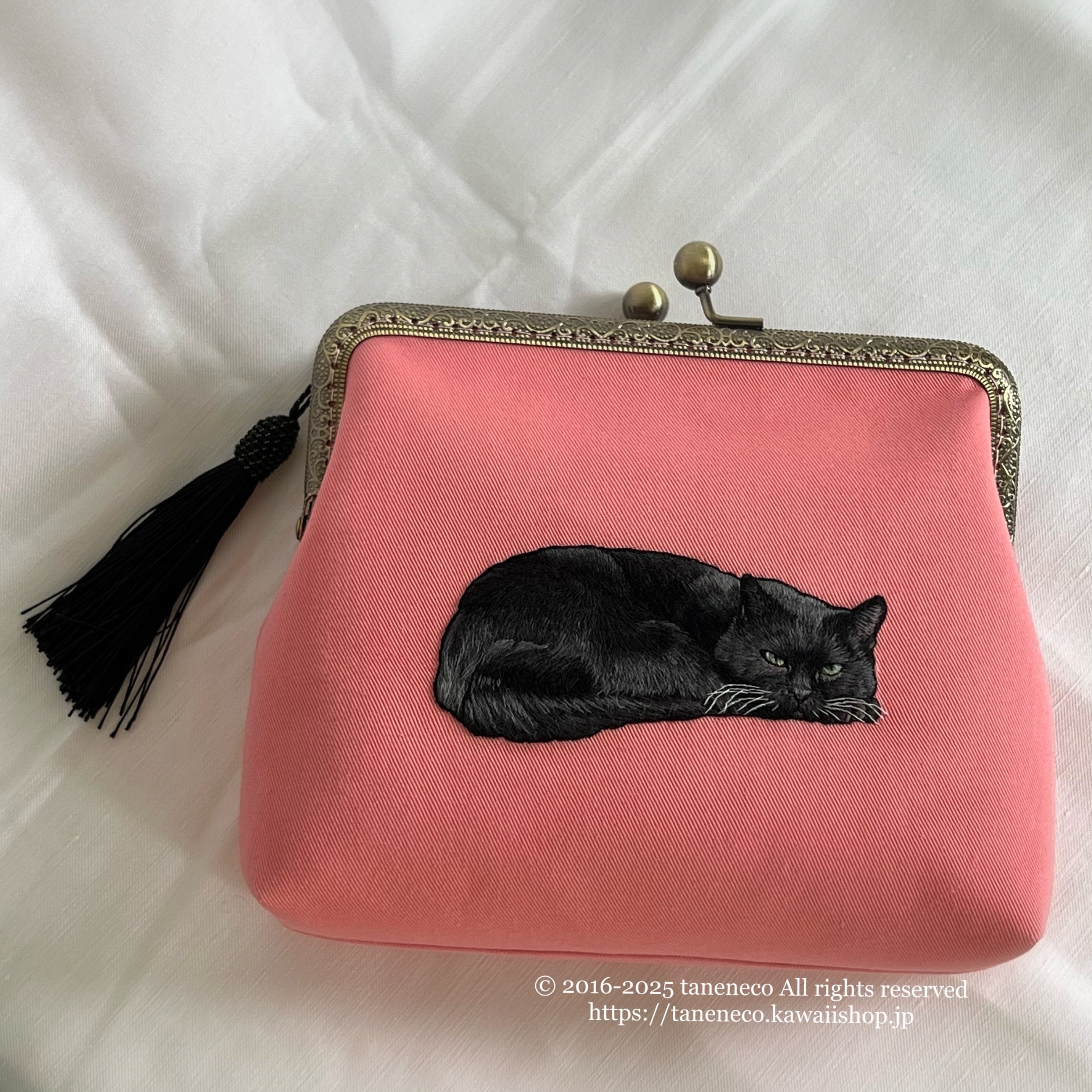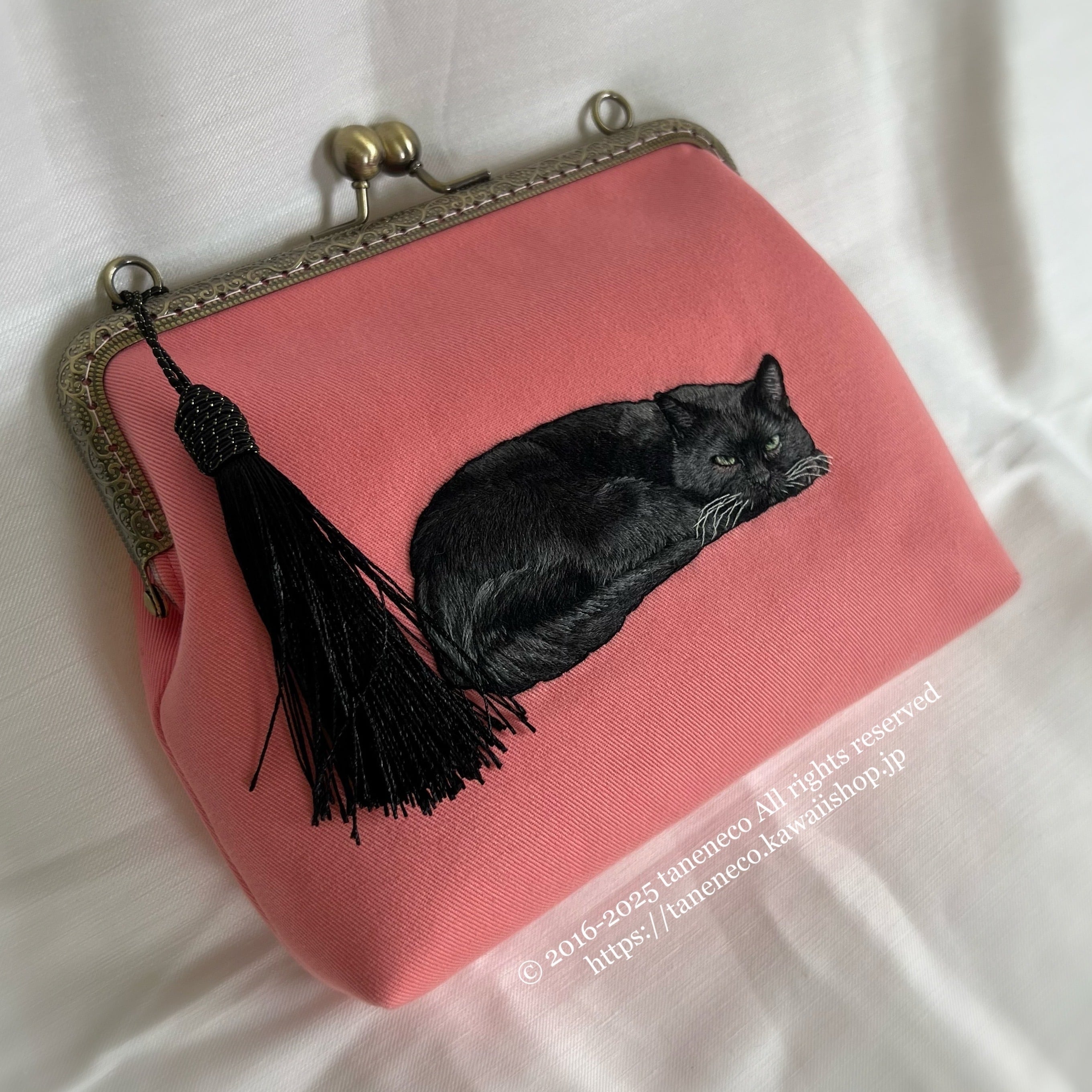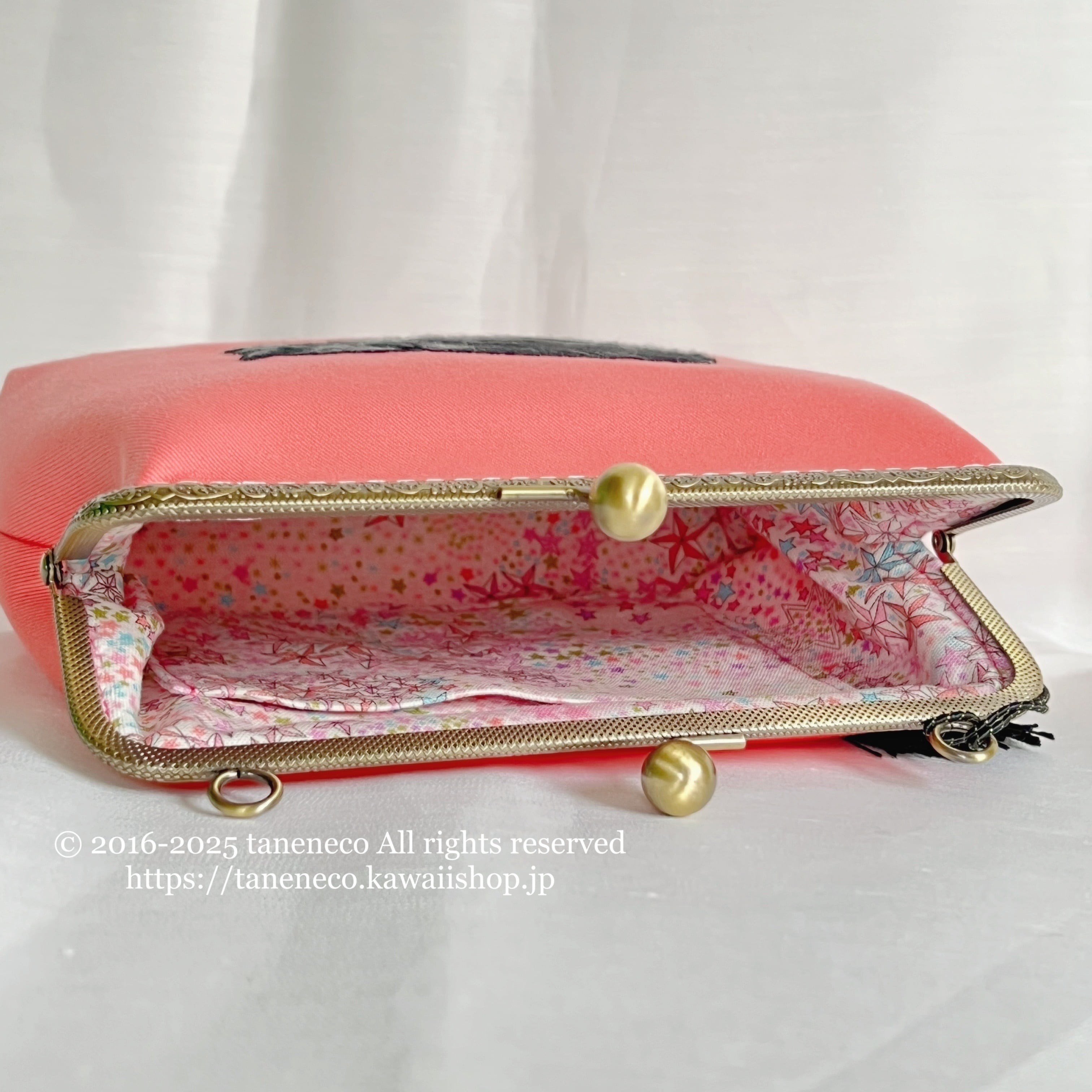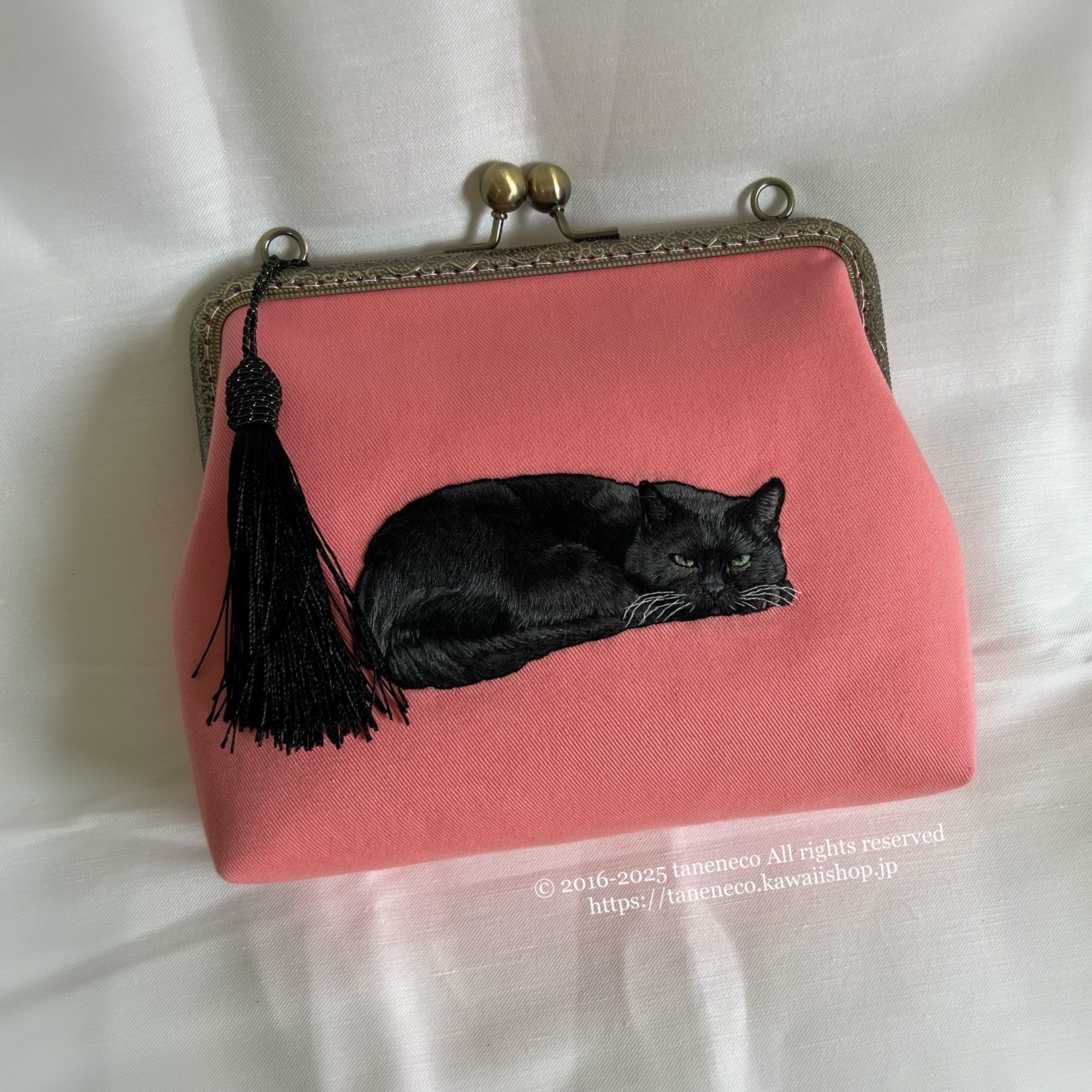 taneneco手刺繍作品『世界一好き』がま口ポーチ