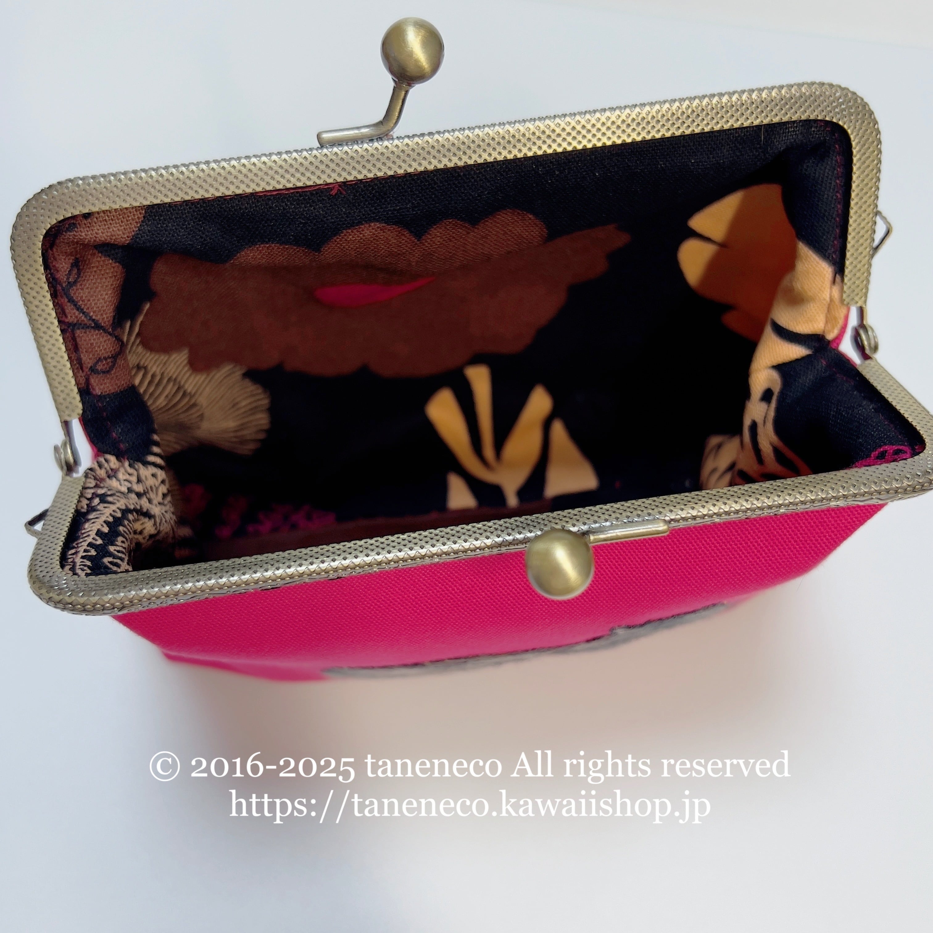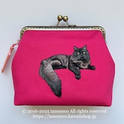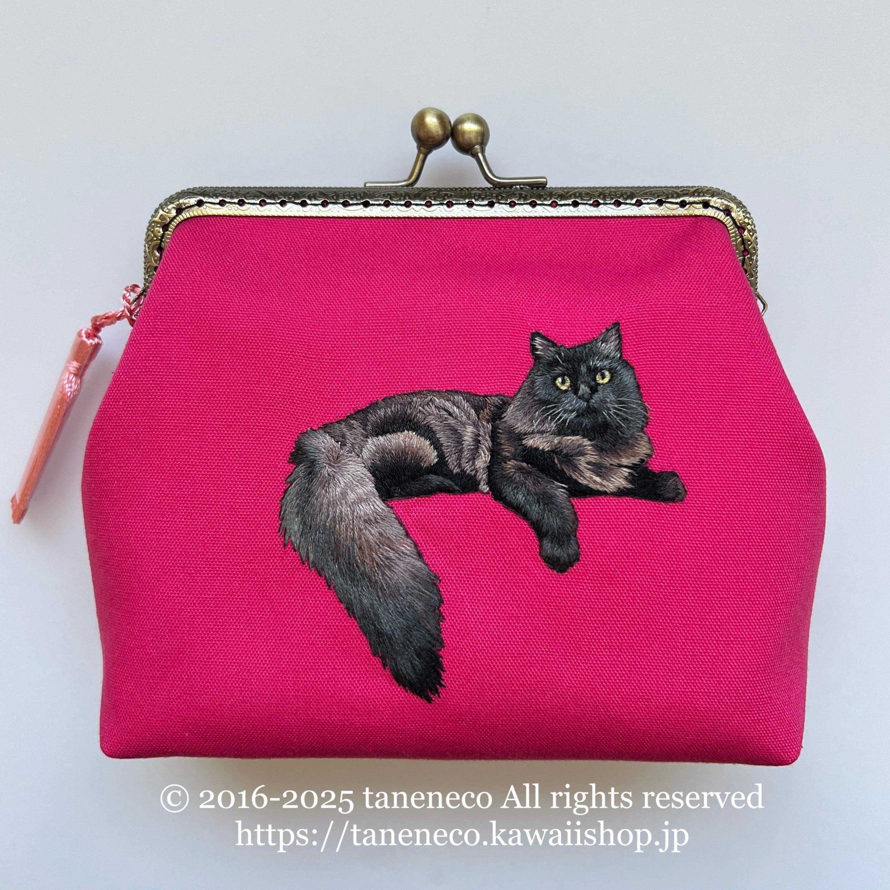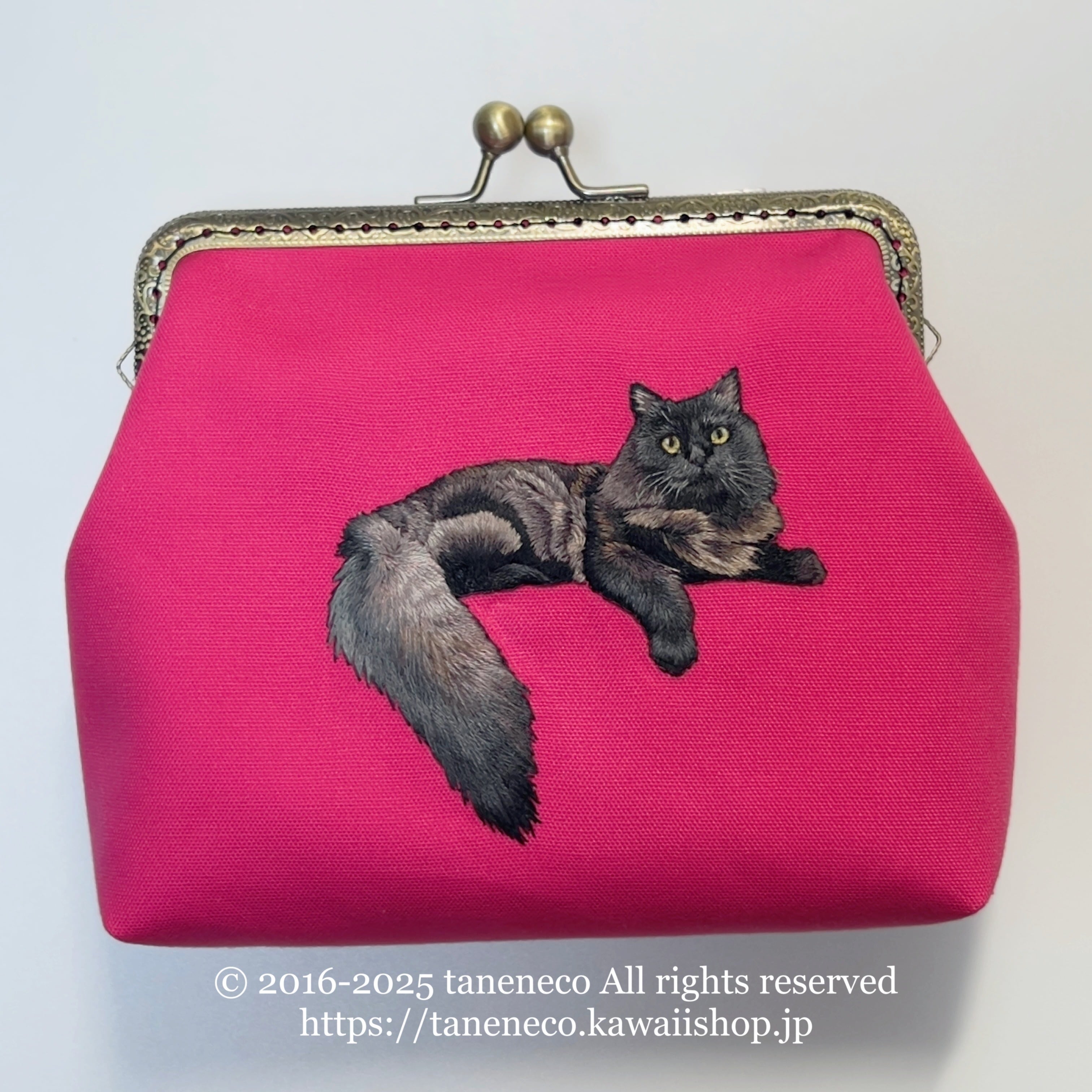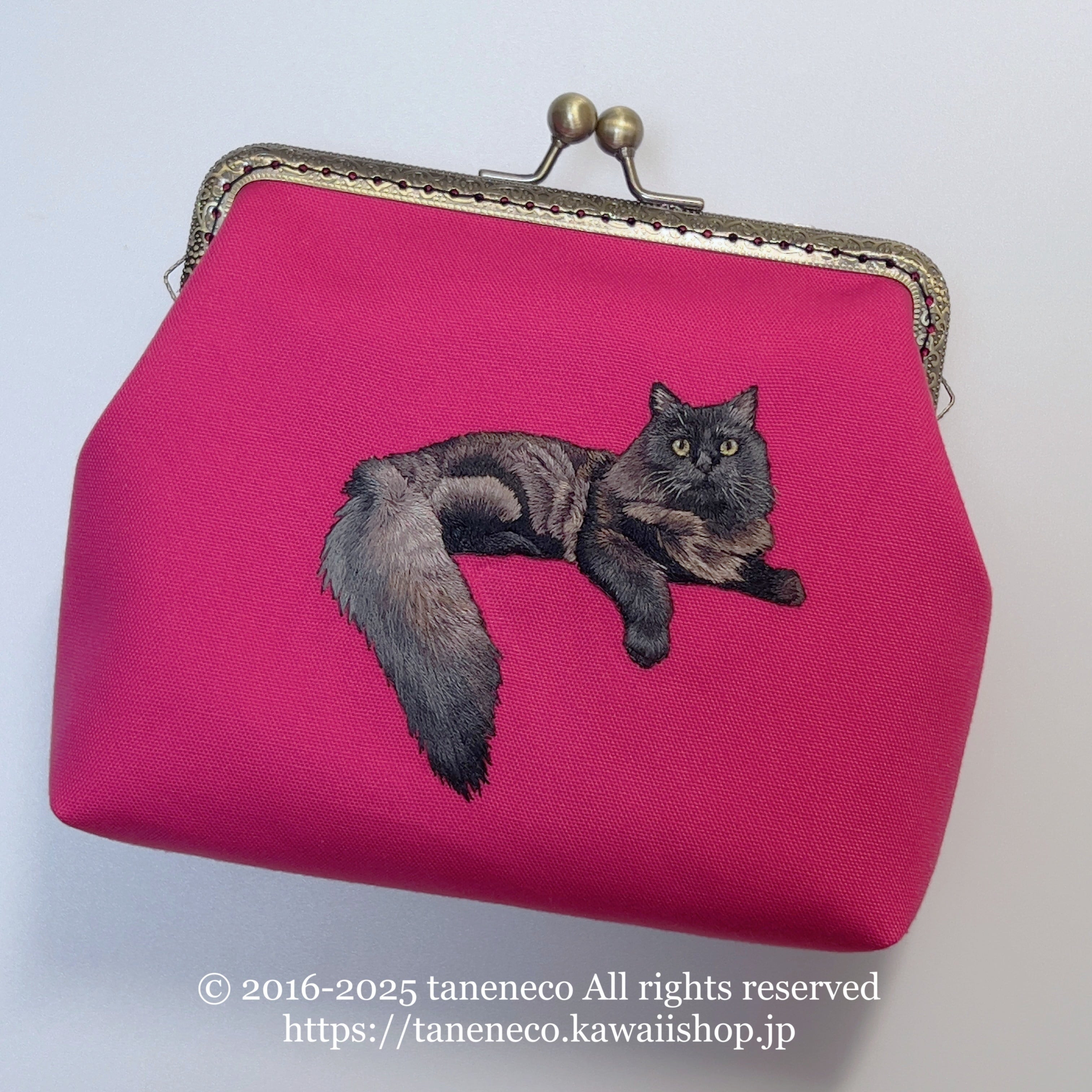 ★送料無料★taneneco手刺繍作品『もふもふもっふるるん』がま口ポーチ
