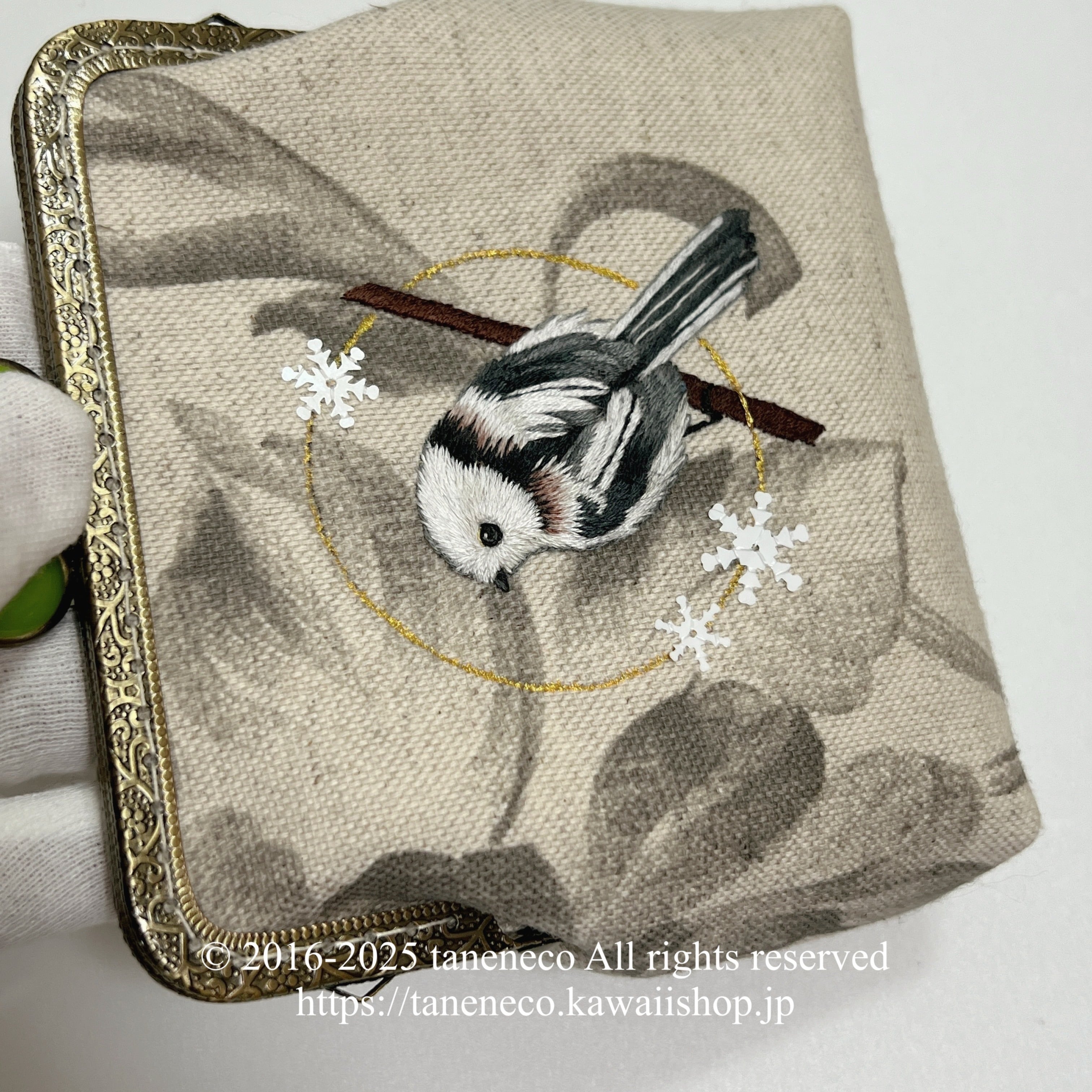 taneneco手刺繍作品『You are beautiful, little bird.』がま口ポーチ