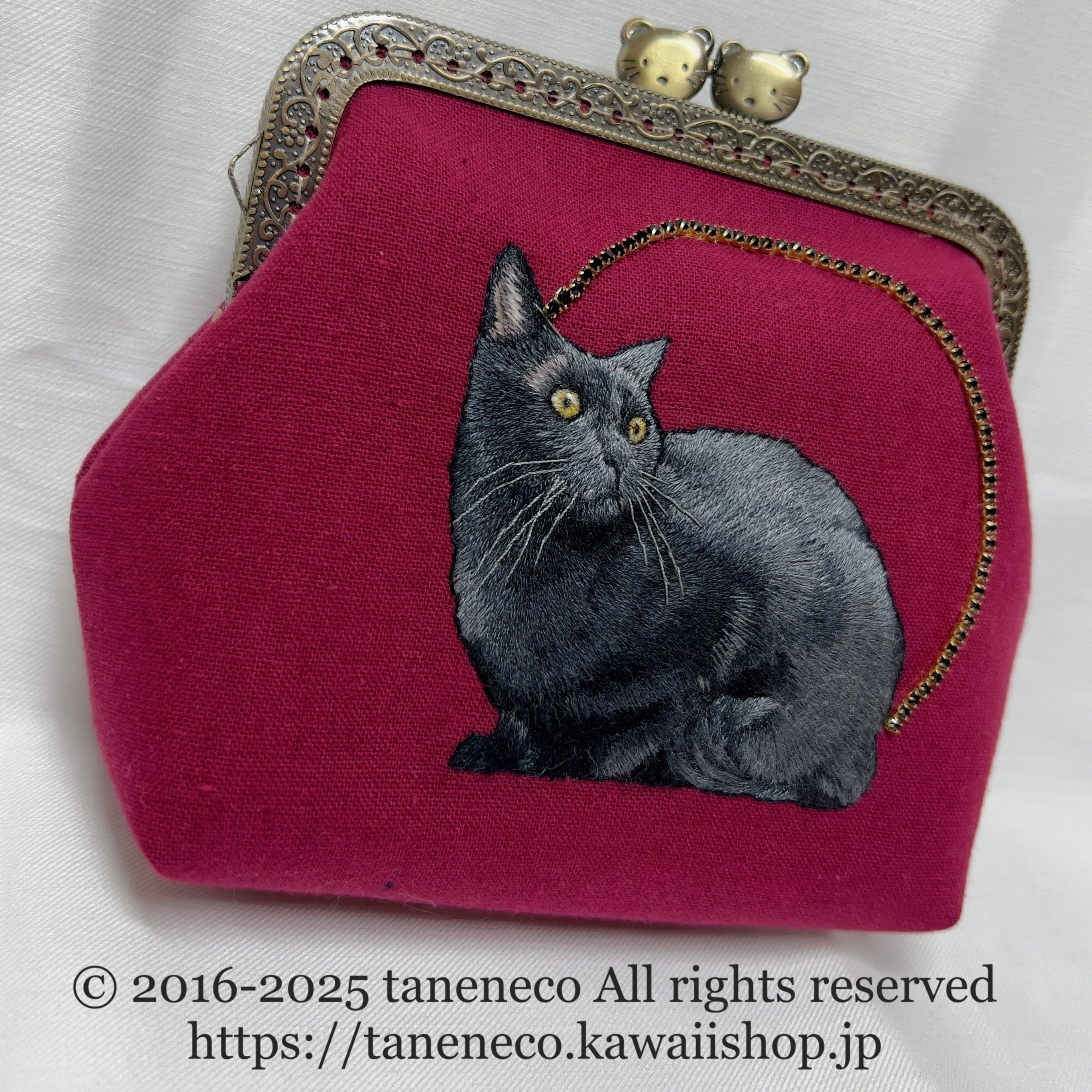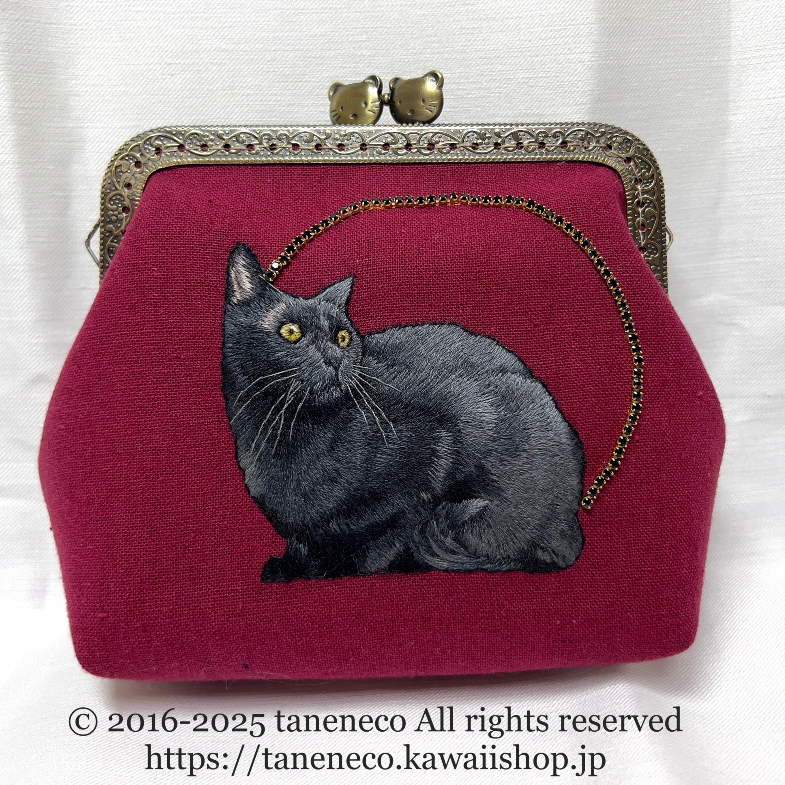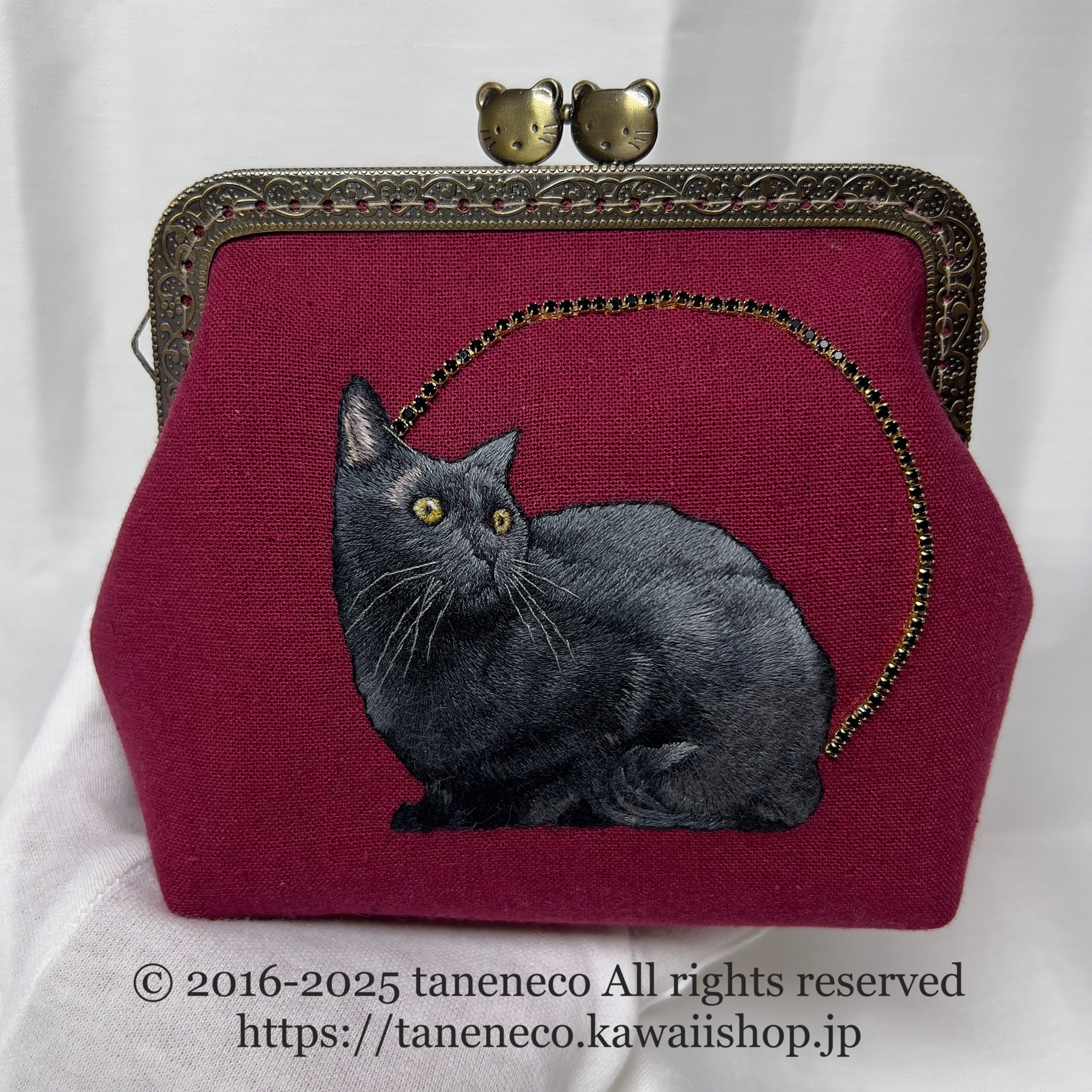 taneneco手刺繍作品『Ma Petite Noir Diamond』がま口ポーチ