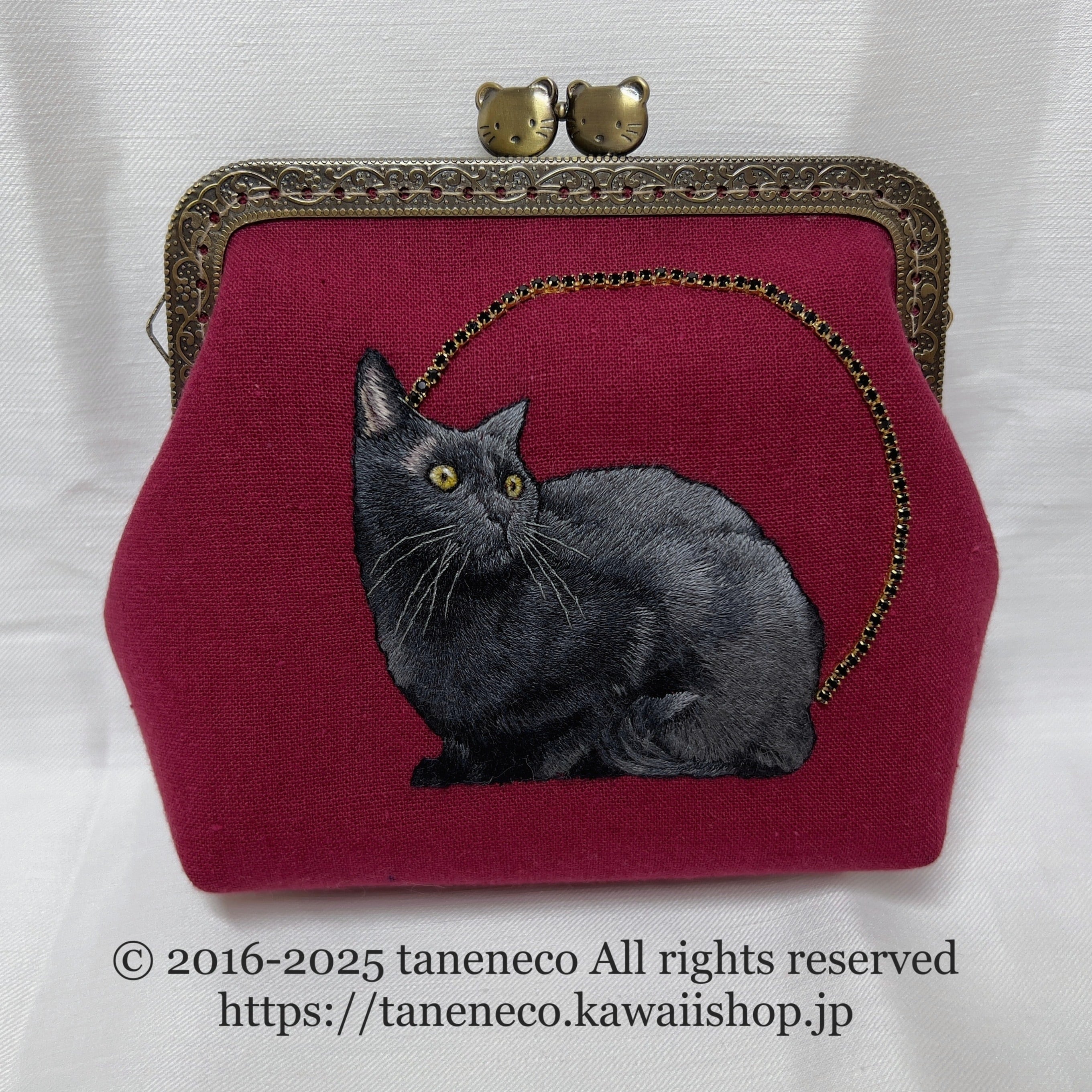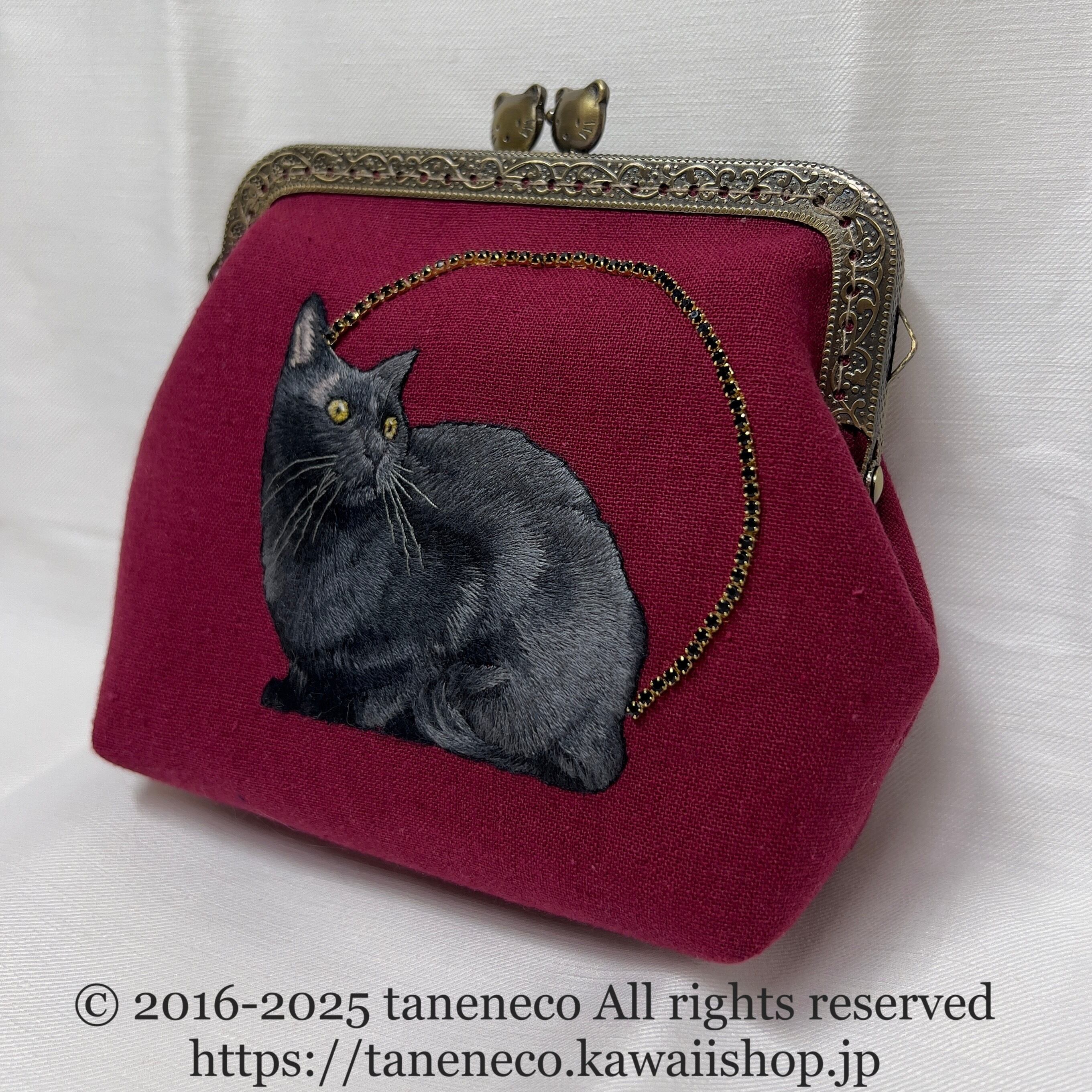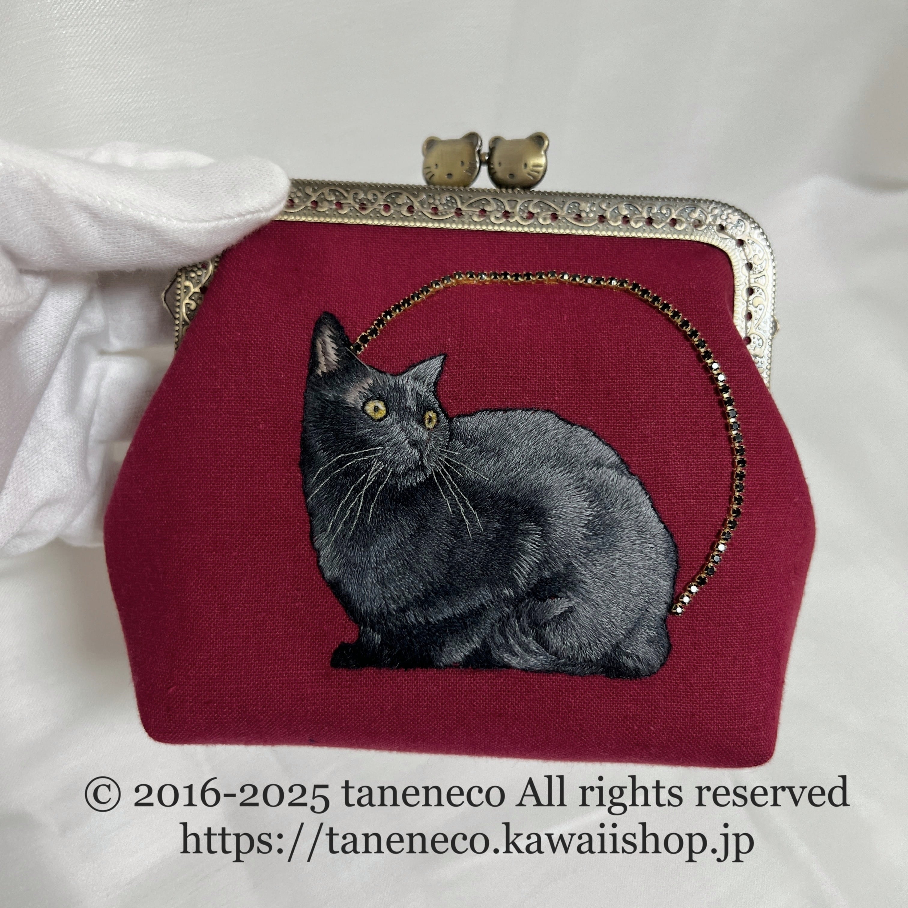 taneneco手刺繍作品『Ma Petite Noir Diamond』がま口ポーチ