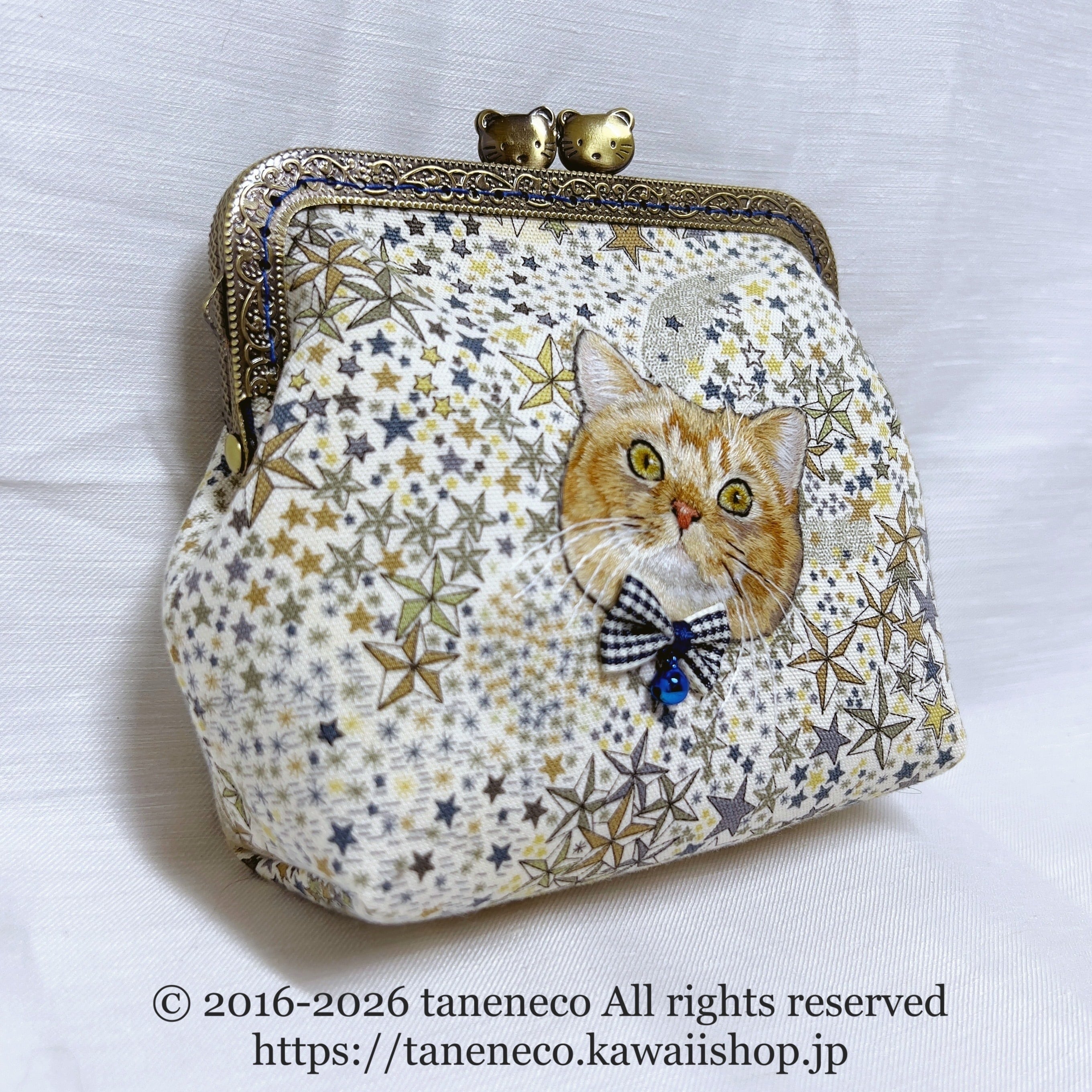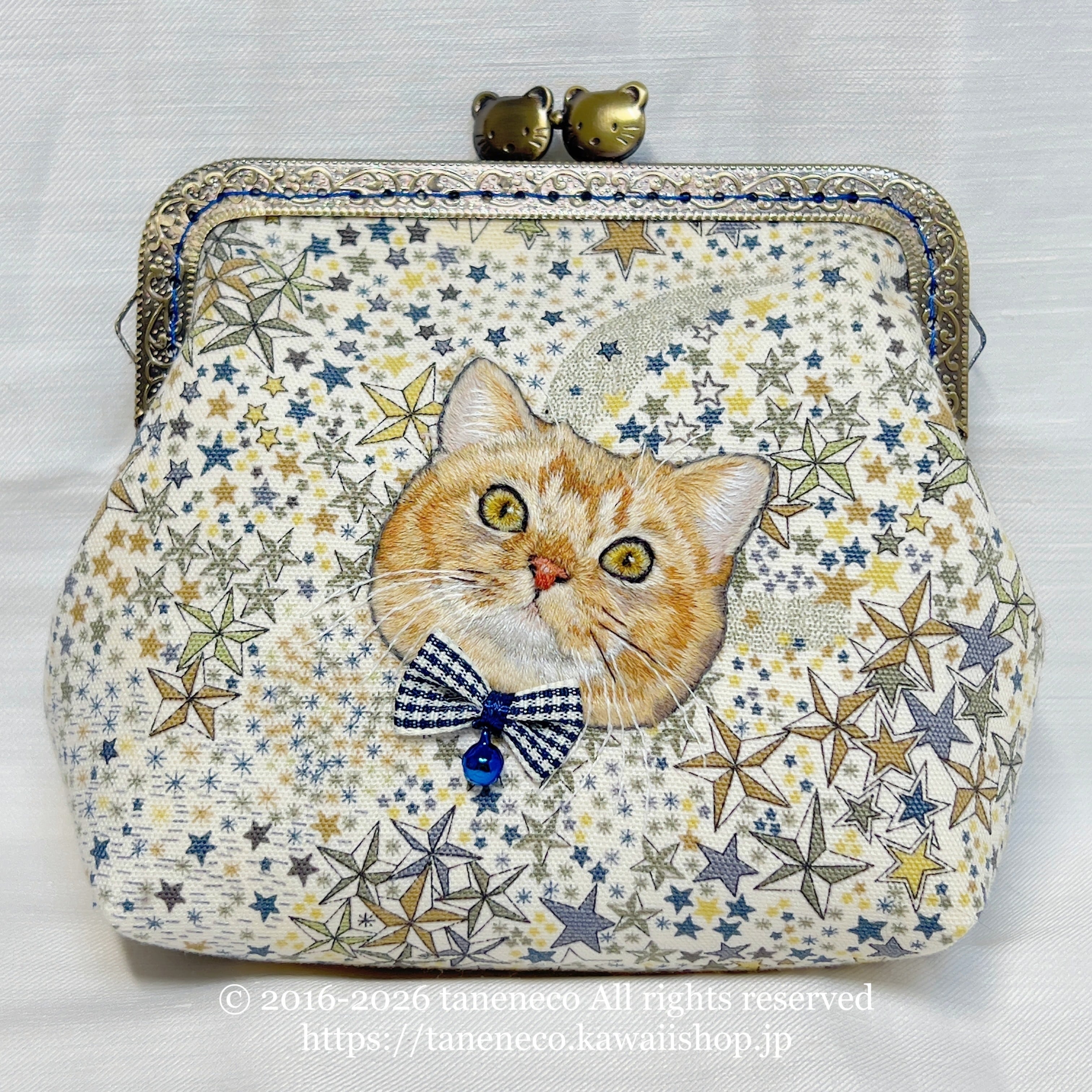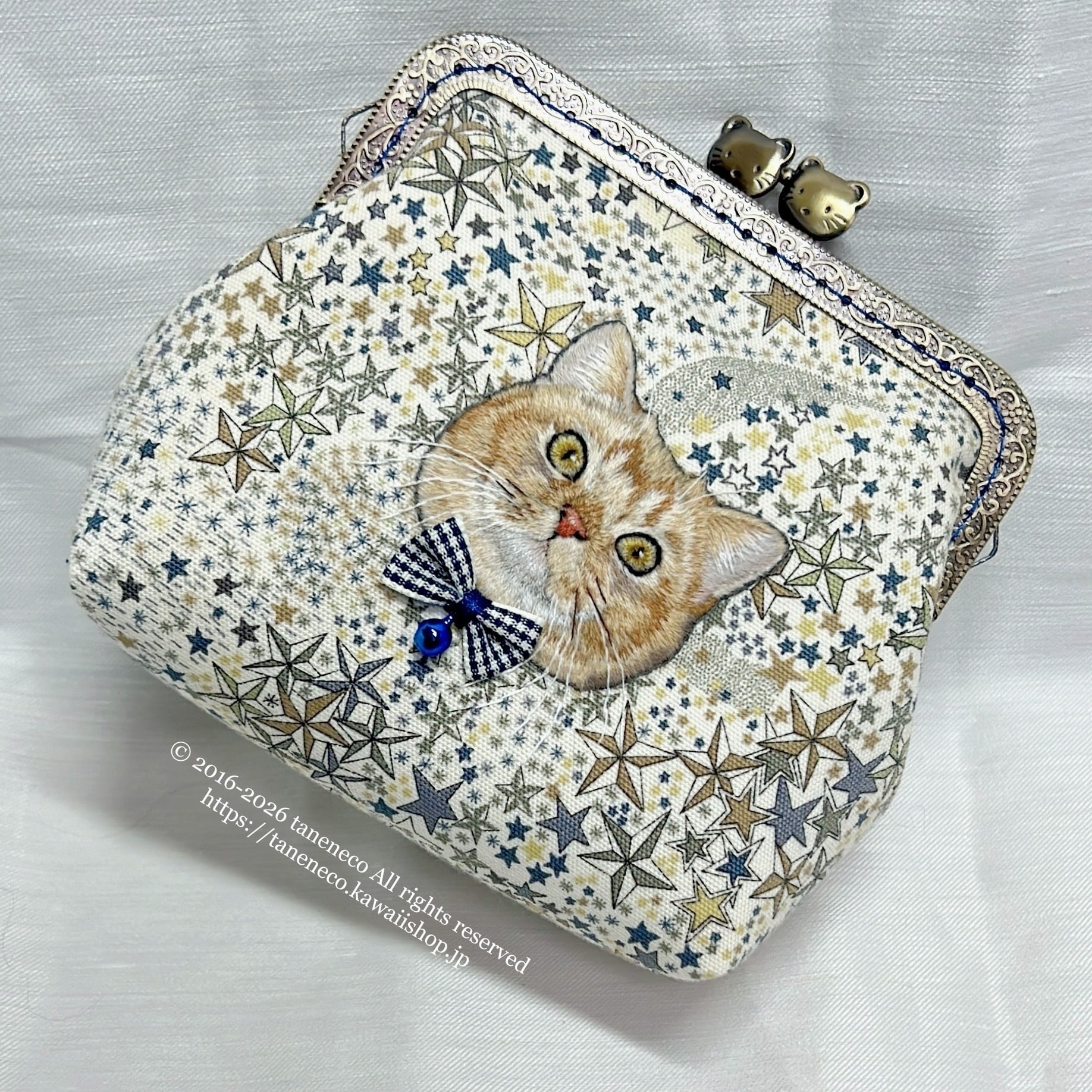 taneneco手刺繍作品『Maple Cotton Candy loves Dressing Up.』がま口ポーチ