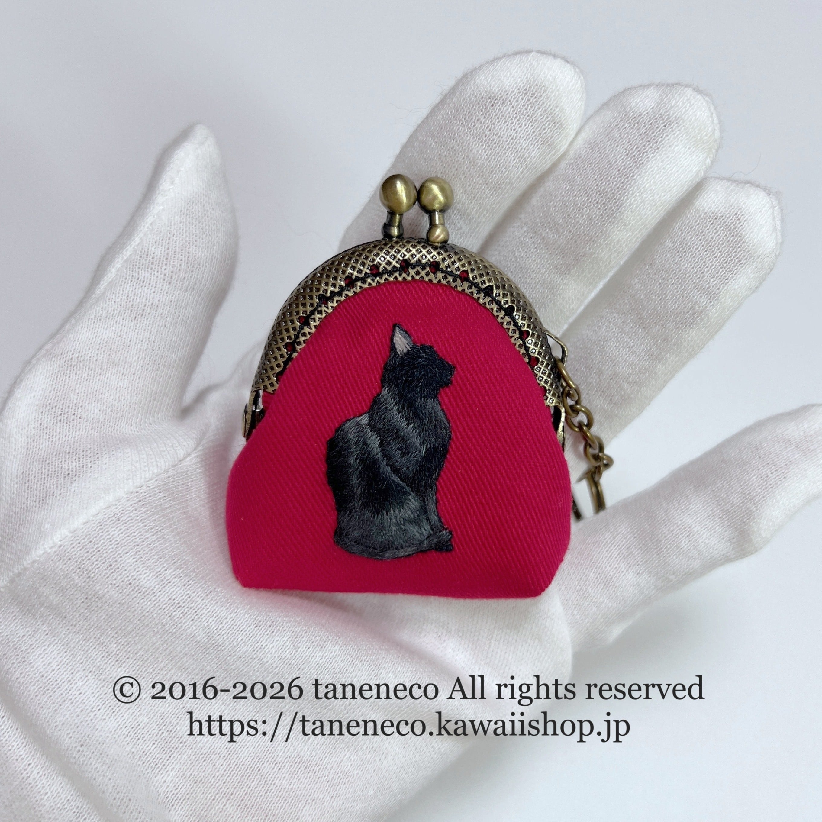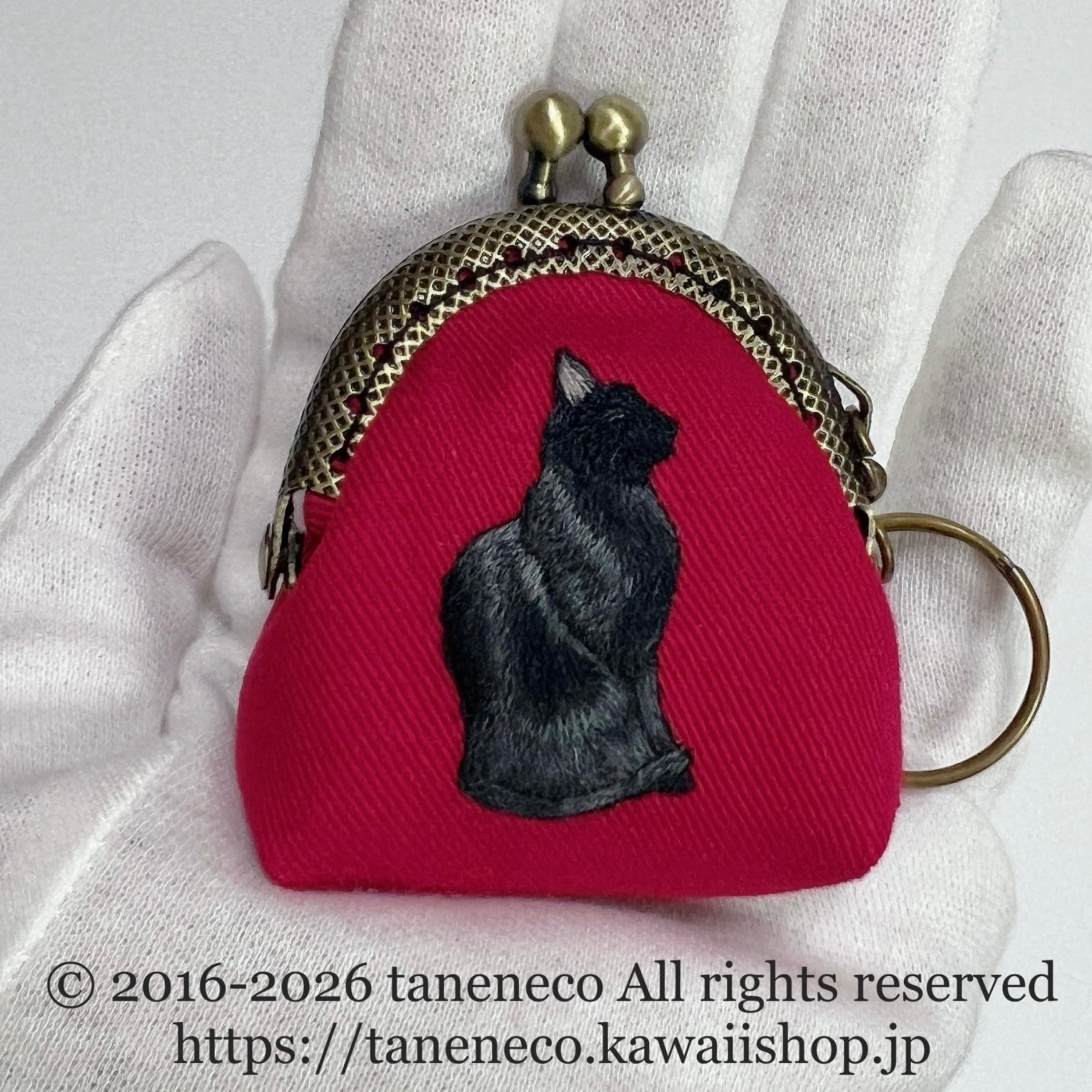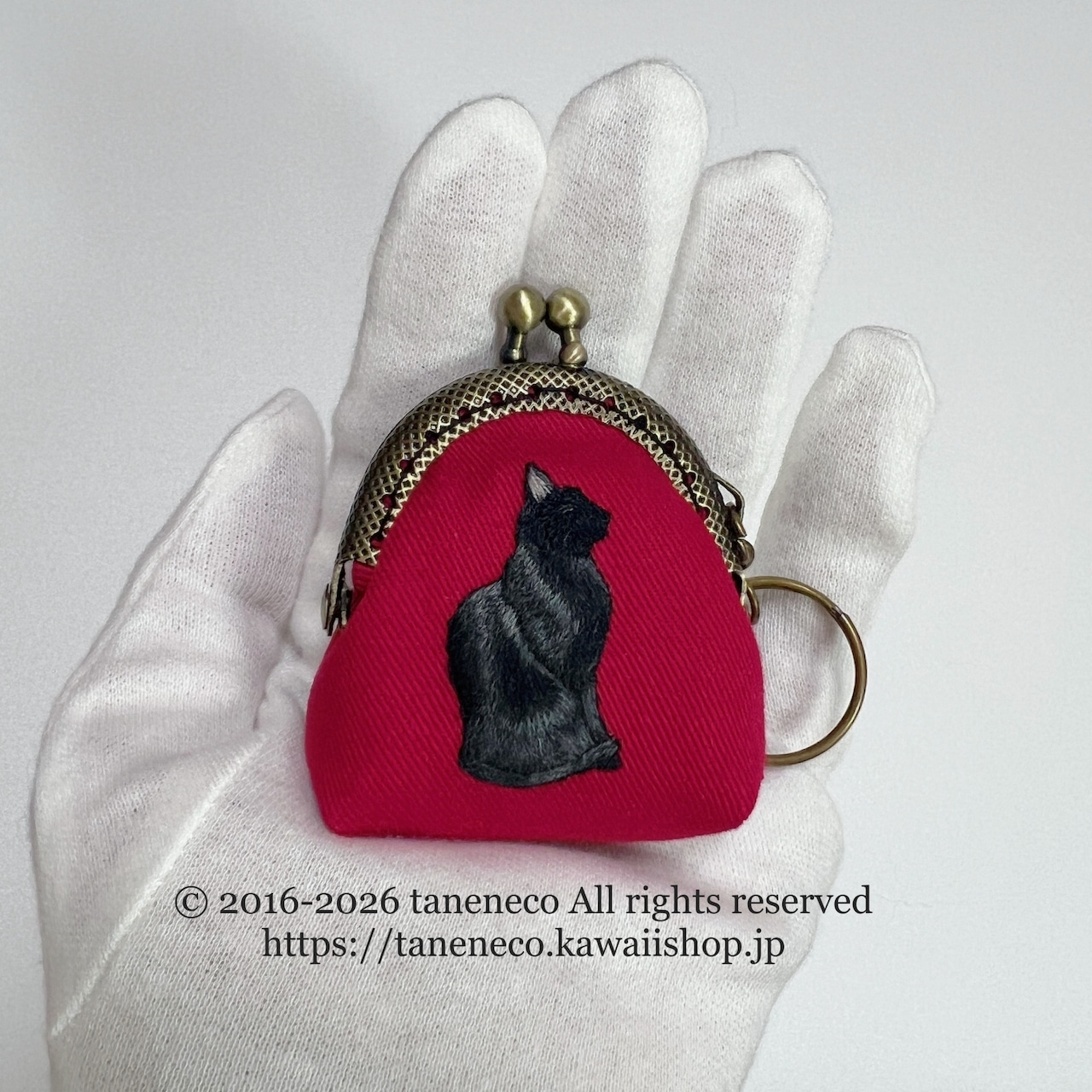 taneneco手刺繍作品『10周年記念限定版BlackCats』ミニミニがま口