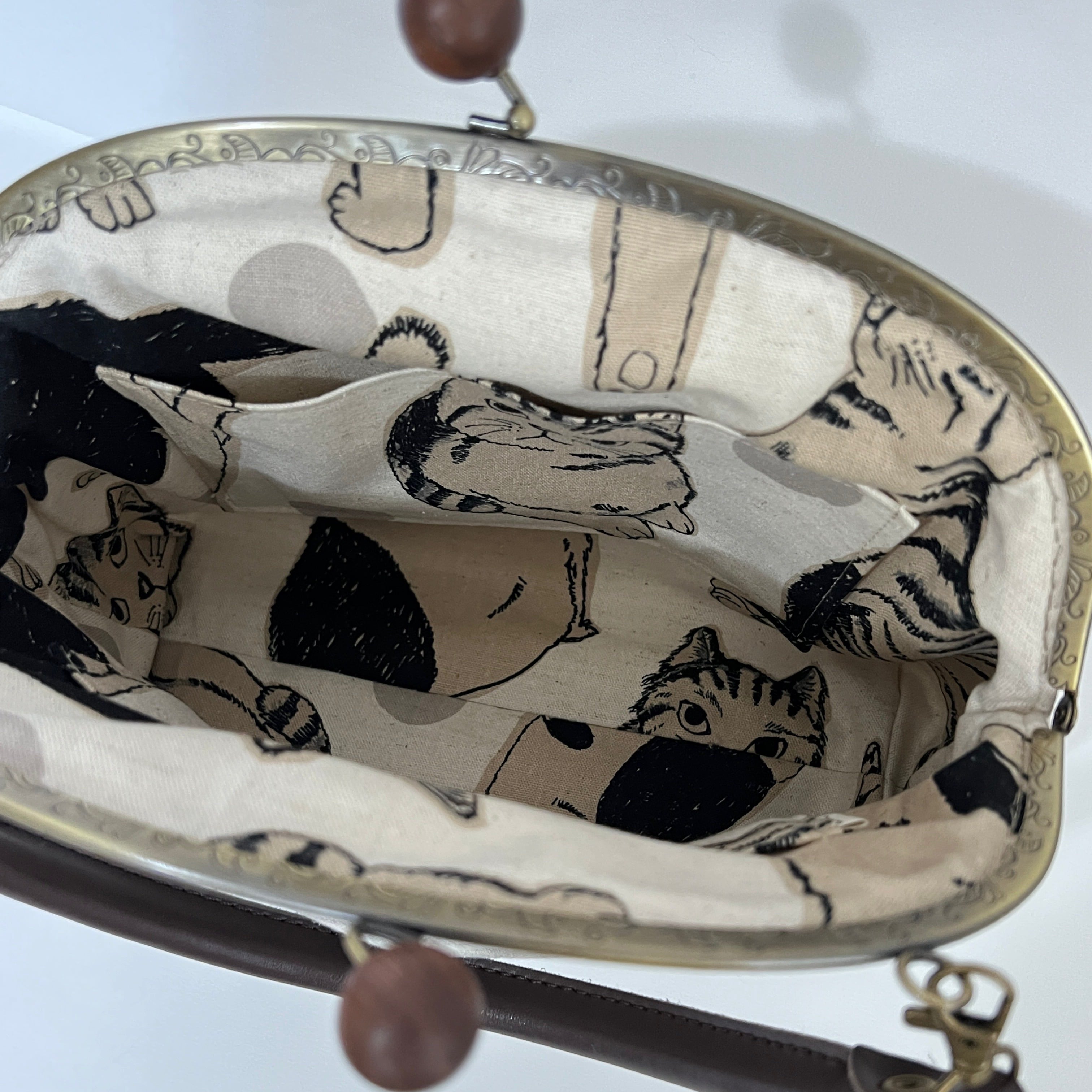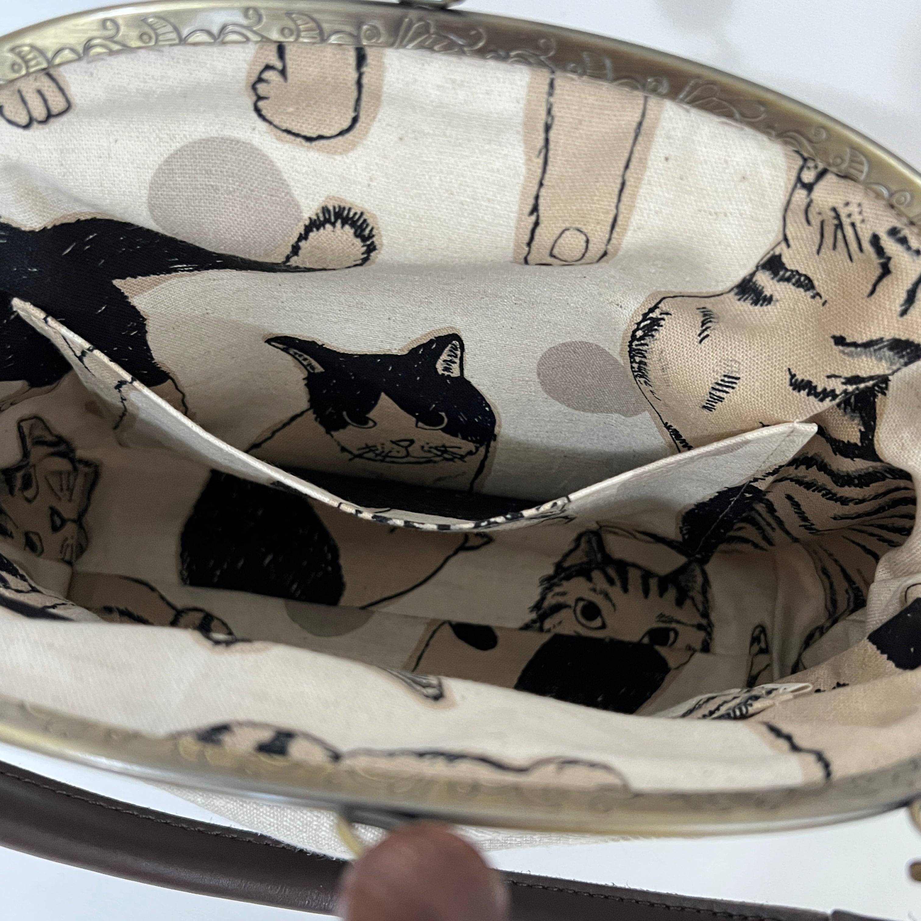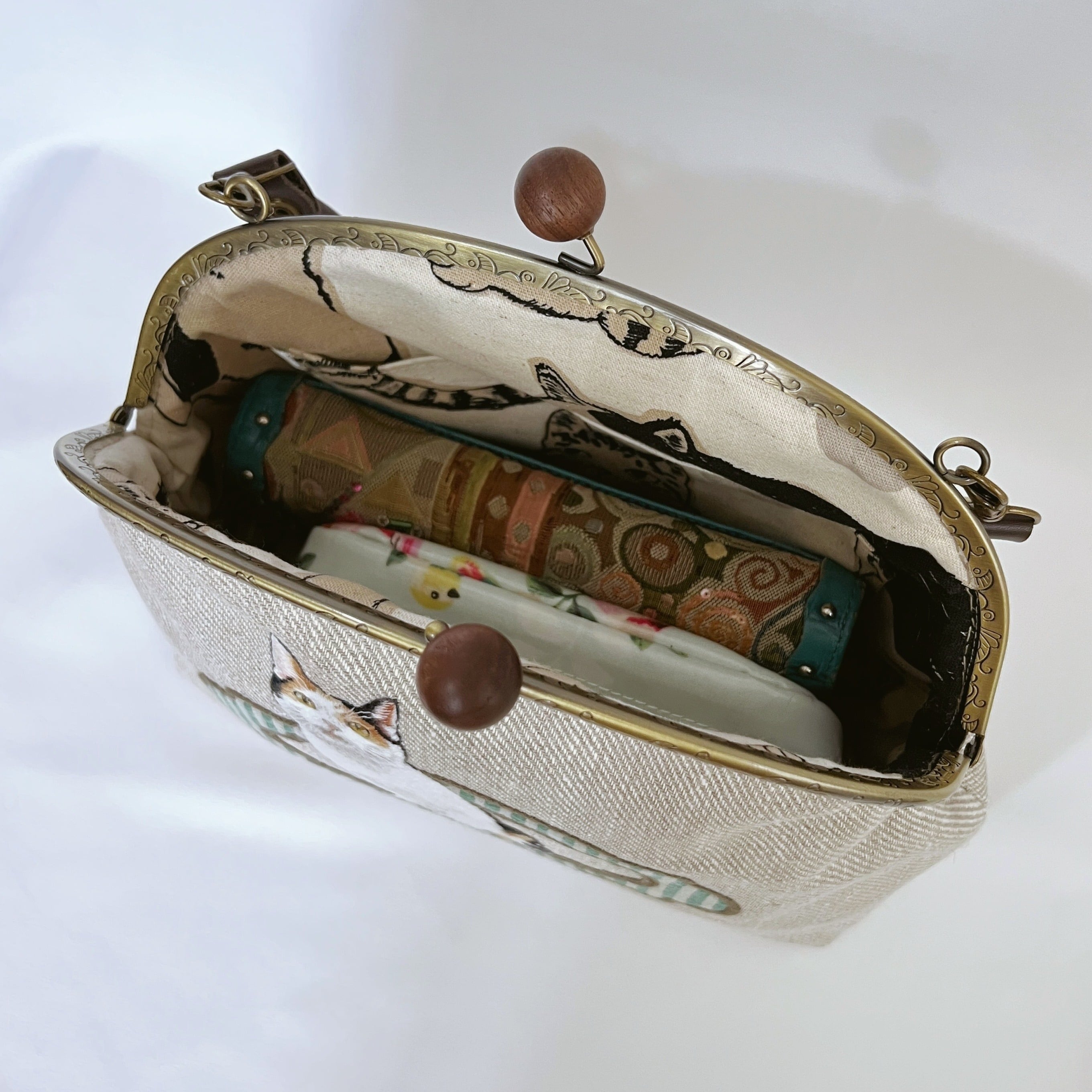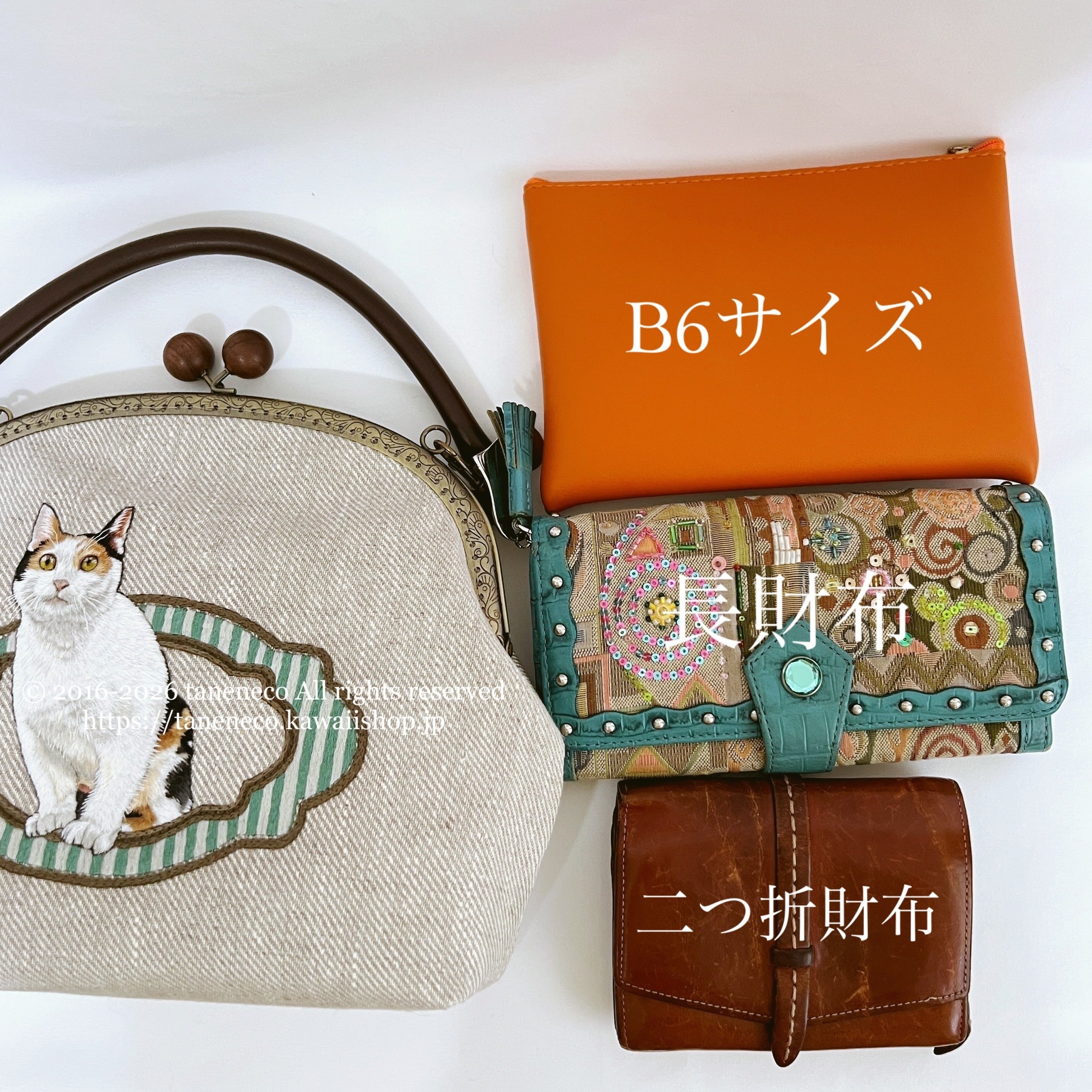 taneneco手刺繍作品「三毛猫が招く 奏福(しあわせ)のさざめき‐The Whispering Fortune of a Calico‐」ハンドバッグ