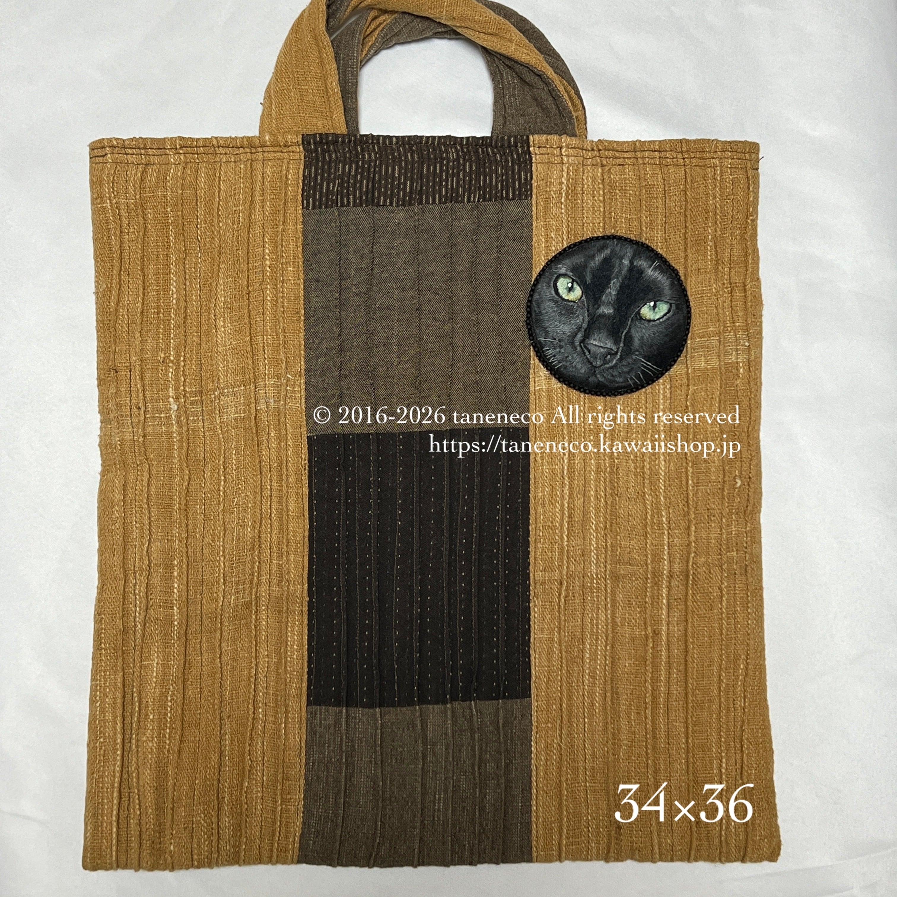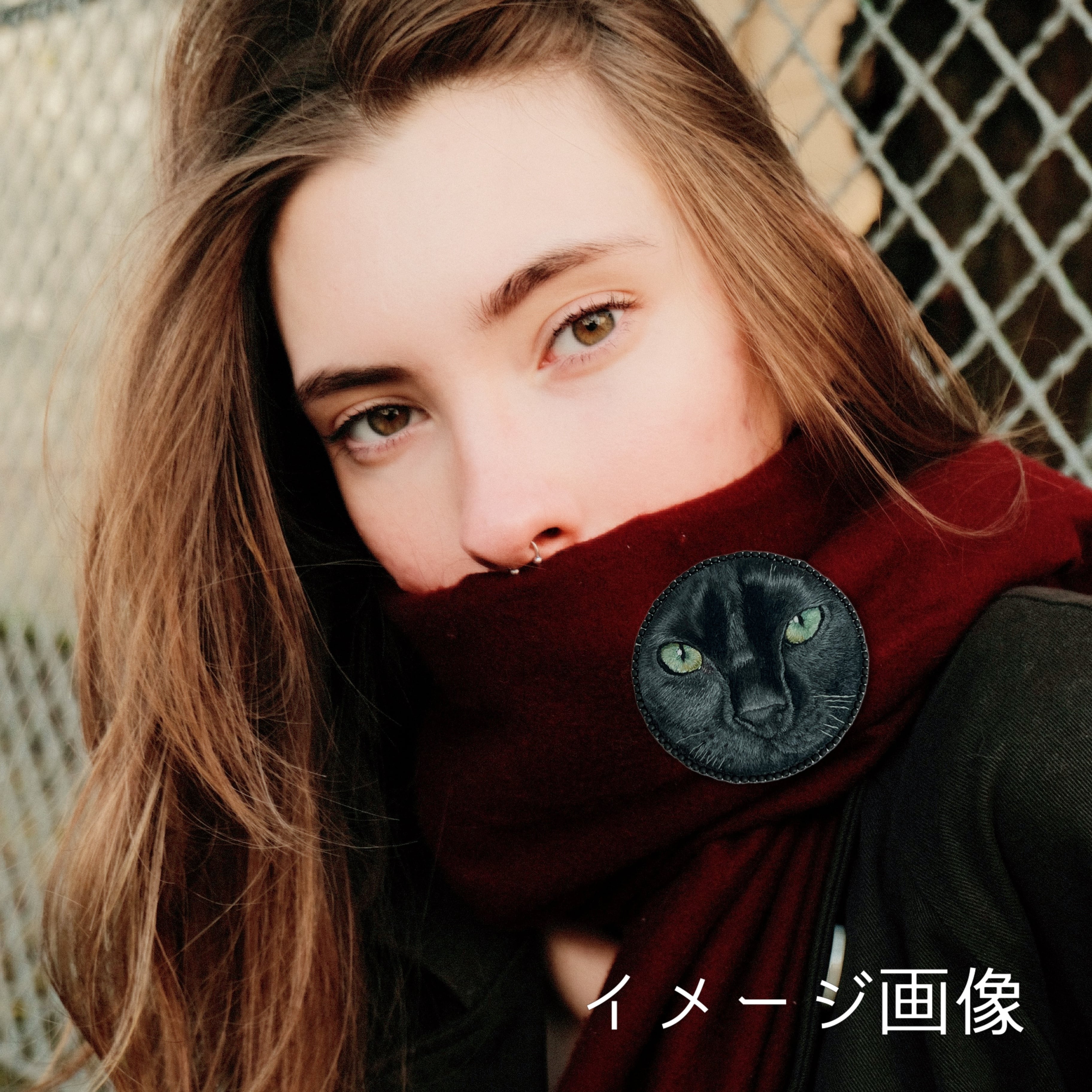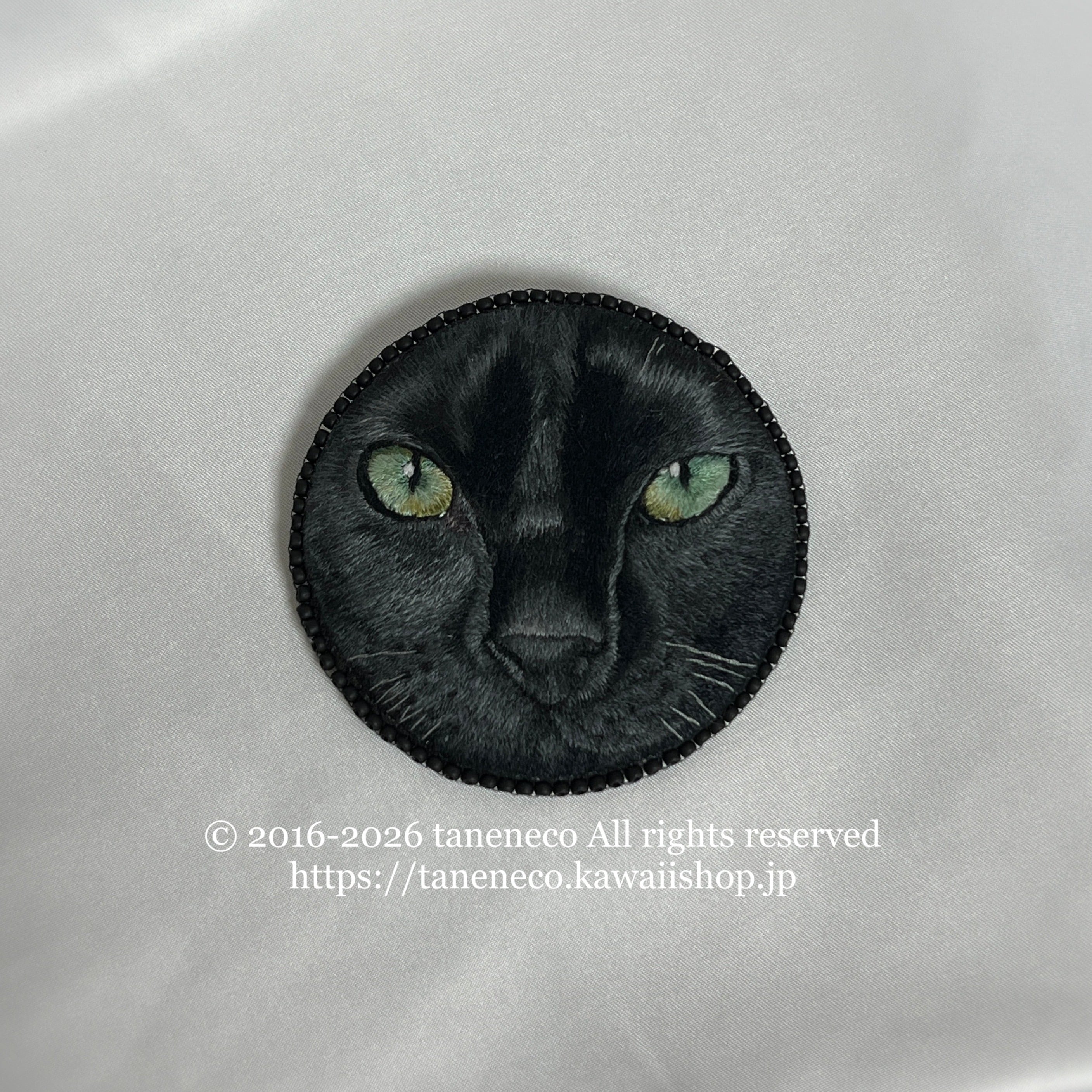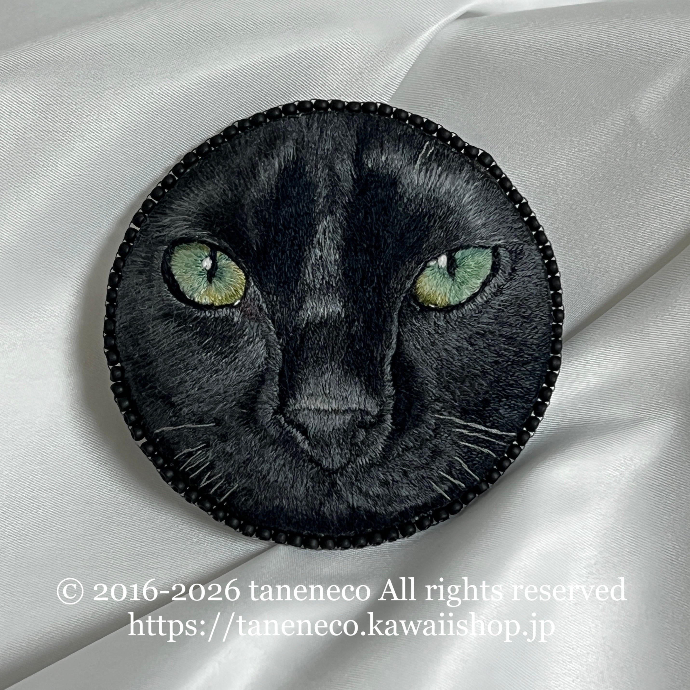 taneneco手刺繍作品「黒猫の眼差し」ブローチ