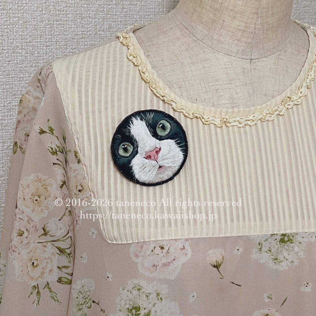 taneneco手刺繍作品「ハチワレと一緒に」イメージサンプル品