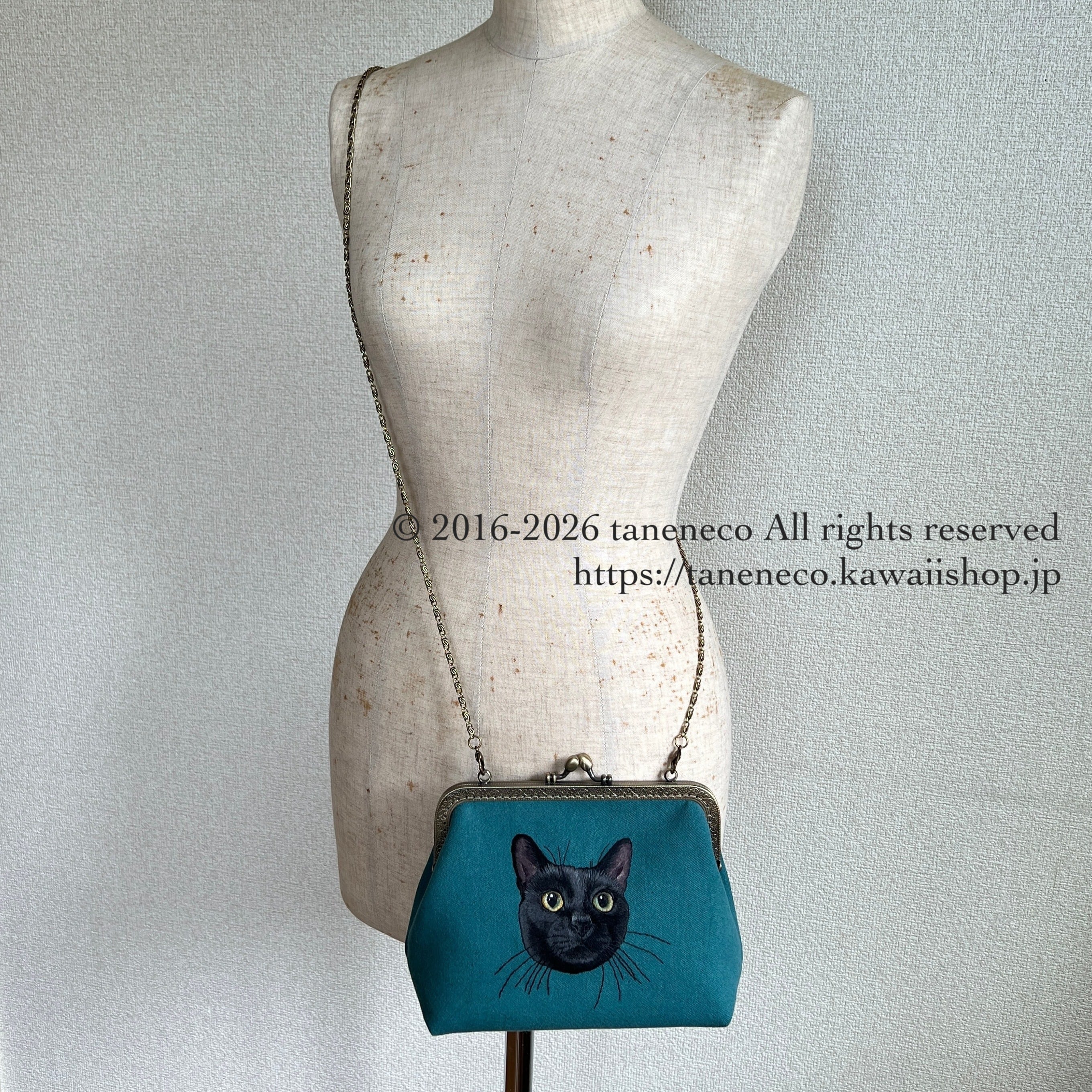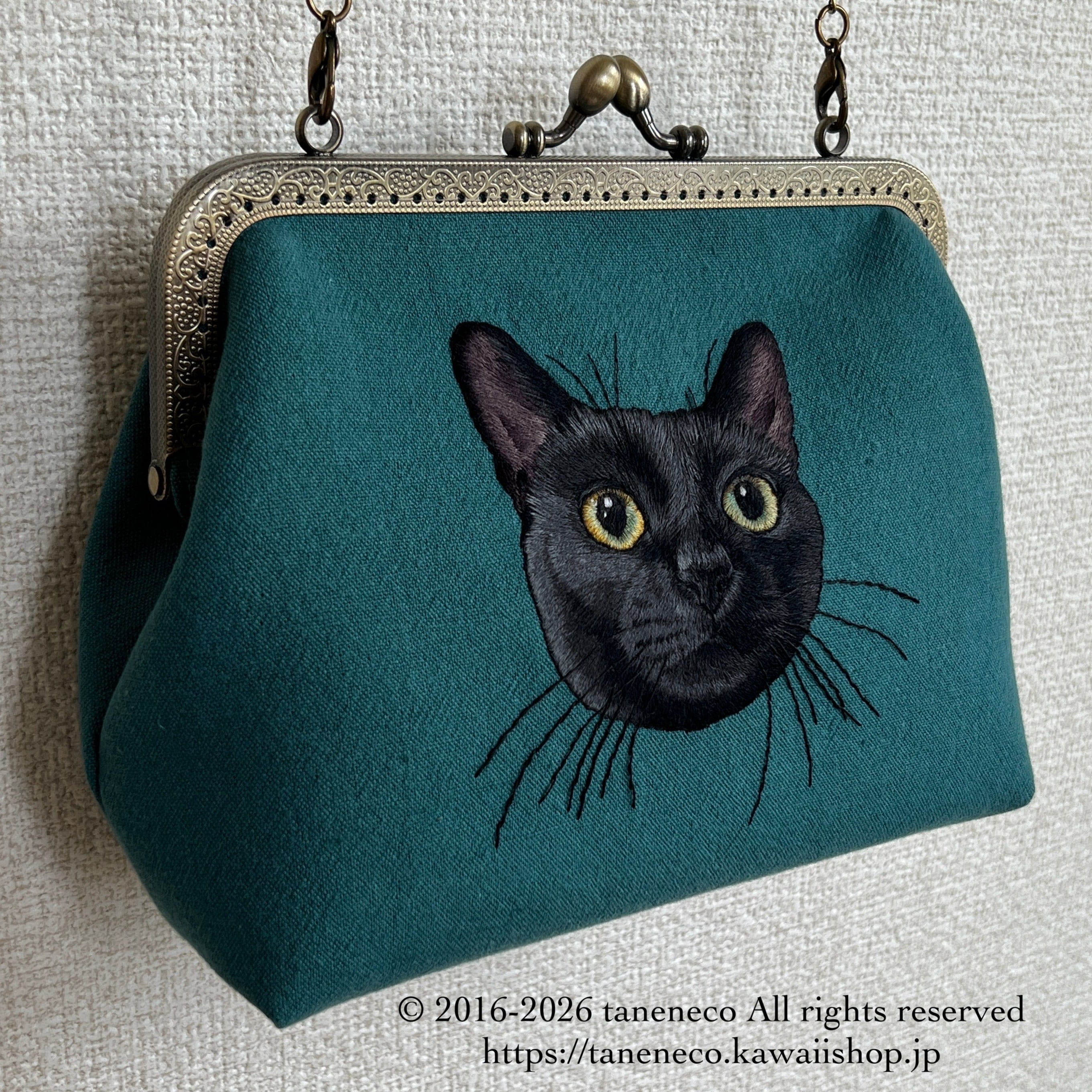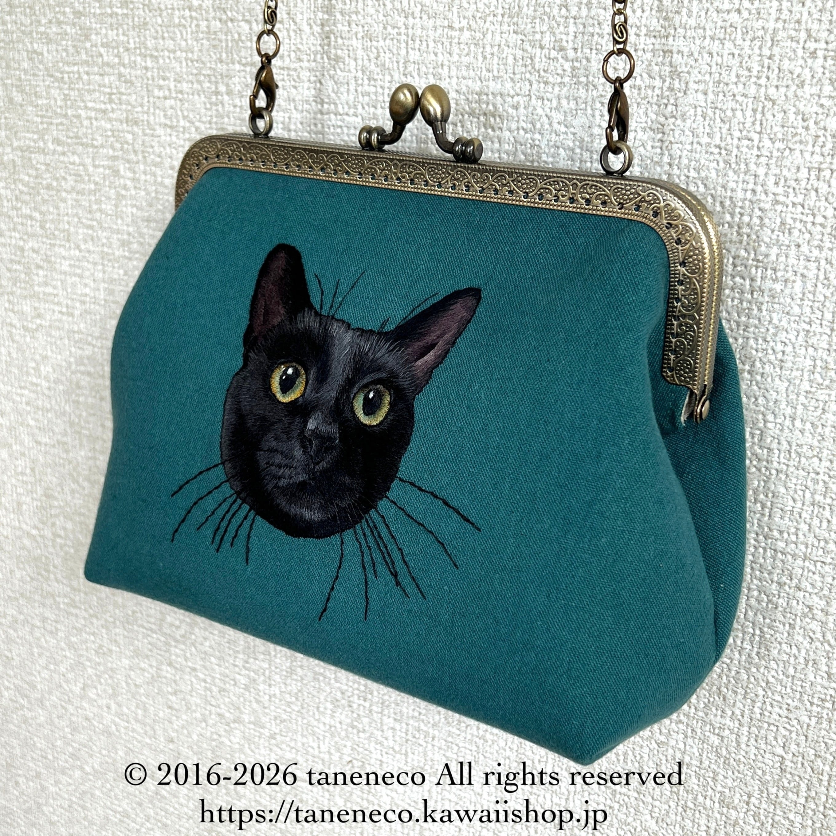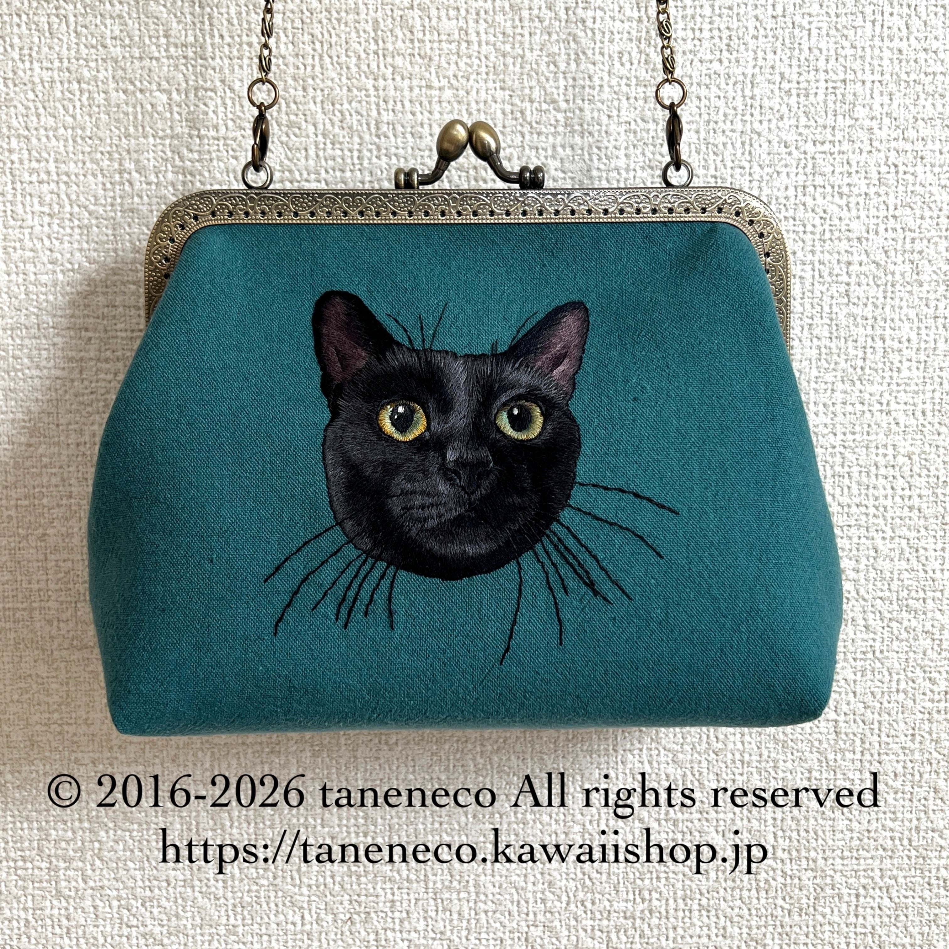 taneneco手刺繍作品『『Gatto Nero ‐黒猫‐』』がま口ポシェット